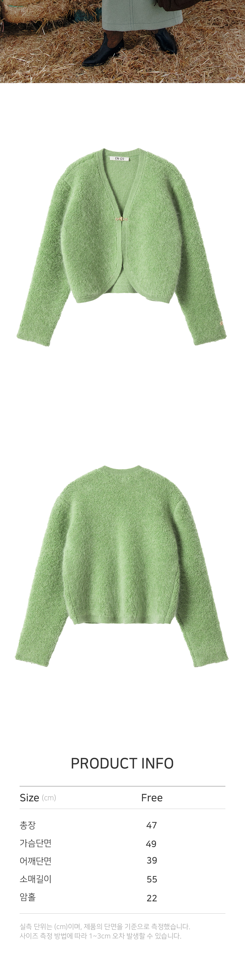 - 이태리 Lagopolane 사의 원사를 사용하여 제작된 모헤어 니트 볼레로입니다. - 포근함이 느껴지는 모헤어 원단으로 뛰어난 보온성과 소재 특유의 헤어감이 매력적인 아이템입니다. - 베이직한 디자인에 포인트되는 컬러감이 더해져 다양한 스타일링이 가능하며, 넥 라인과 밑단의 립 조직 마무리로 캐주얼한 무드가 연출됩니다.