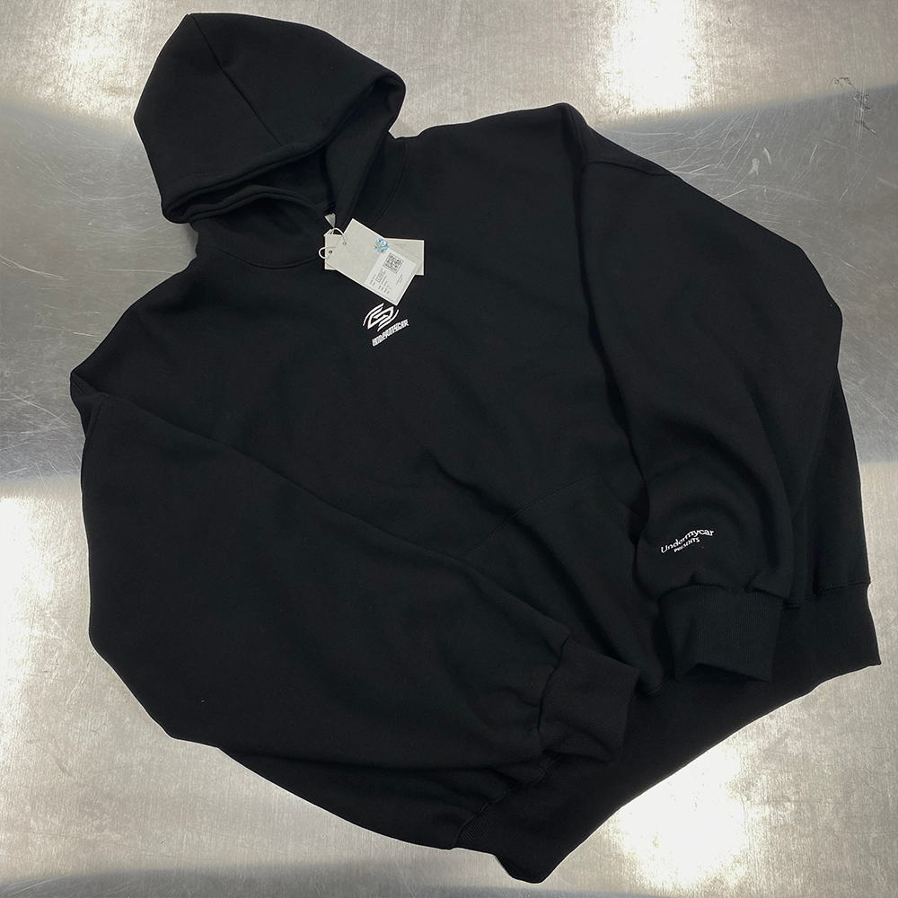 언더마이카 무.12 안티 Fxxking 로고 플레이 오버사이즈 본디드 후디 블랙