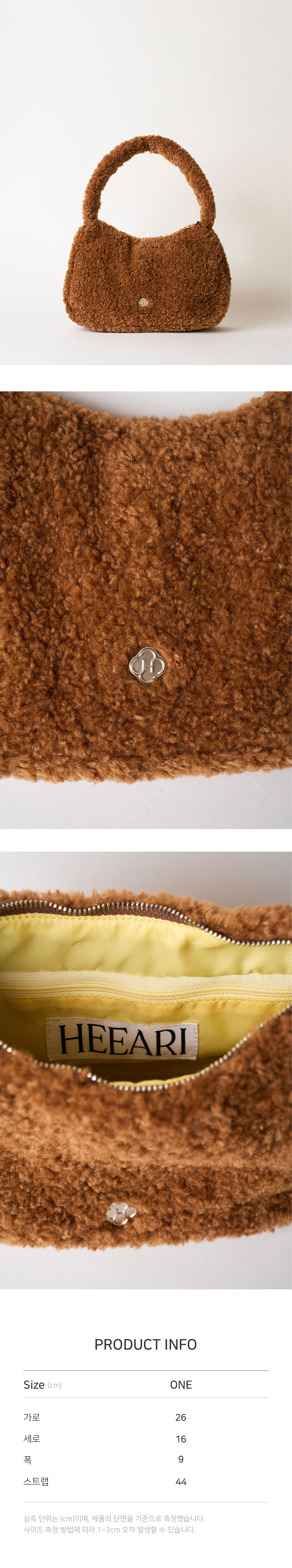 실측 단위는 cm이며, 제품의 단면을 기준으로 측정했습니다.