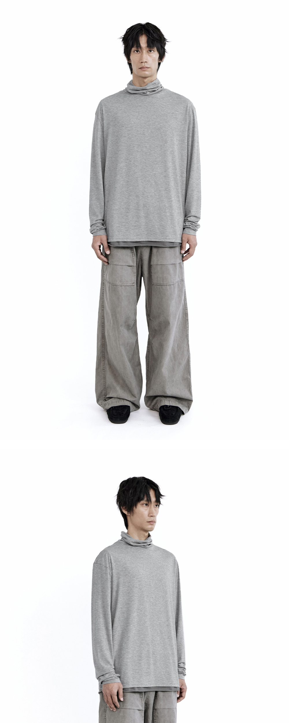 turtle neck sleeve - black, melange gray, charcoal 폴리테루에서 전개하는 거의 모든 상의 및 아우터와 좋은 조합을 이루는 이너 레이어. 특유의 드레이프를 유도하는 패턴과 부드러운 소재감으로 넥 주변 둘레가 자연스럽게 쌓이며, 매칭한 상의 및 아우터의 실루엣과 여유감을 패턴 그대로 최대한 구현할 수 있게끔 특유의 루즈한 밸런스를 유지하되 최소화한 볼륨이 특징입니다. 자연스러운 광택감과 부드러운 촉감을 가지고 있습니다. 셔츠, 스웻, 롱슬리브 등의 이너로 받쳐입기에 최적화된 제품으로, 단품 사용은 추천드리지 않습니다. 팬츠에 넣어입는 방식을 권장드리며, 이를 위한 넉넉한 기장감으로 제작되었습니다. *모델: 170 중반 / 마른 체형, 3사이즈 착용 *금번 차수는 기존 차수 대비 기장감 짧게 조정되었습니다.