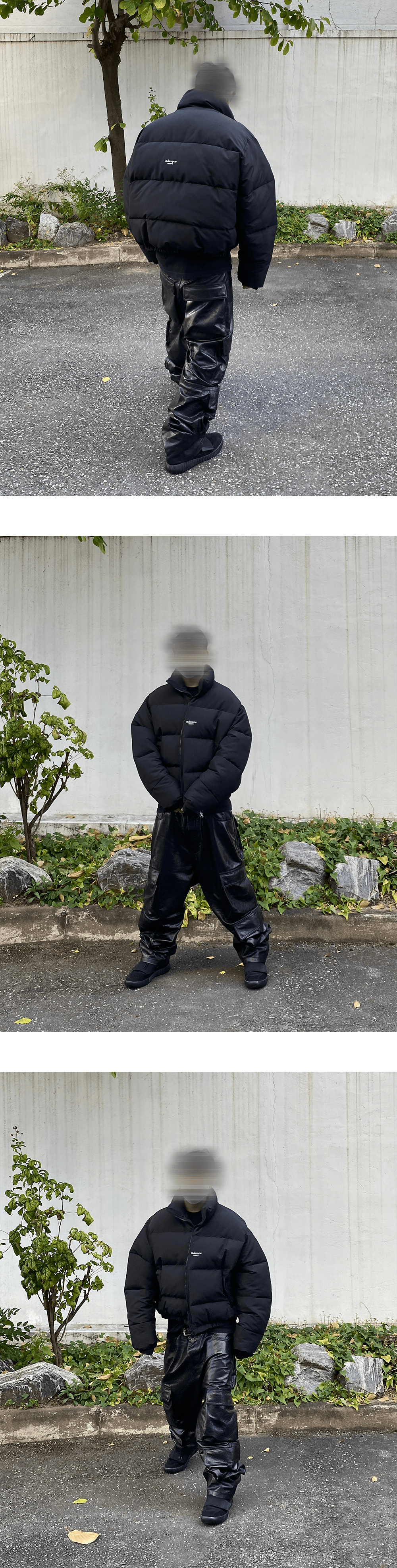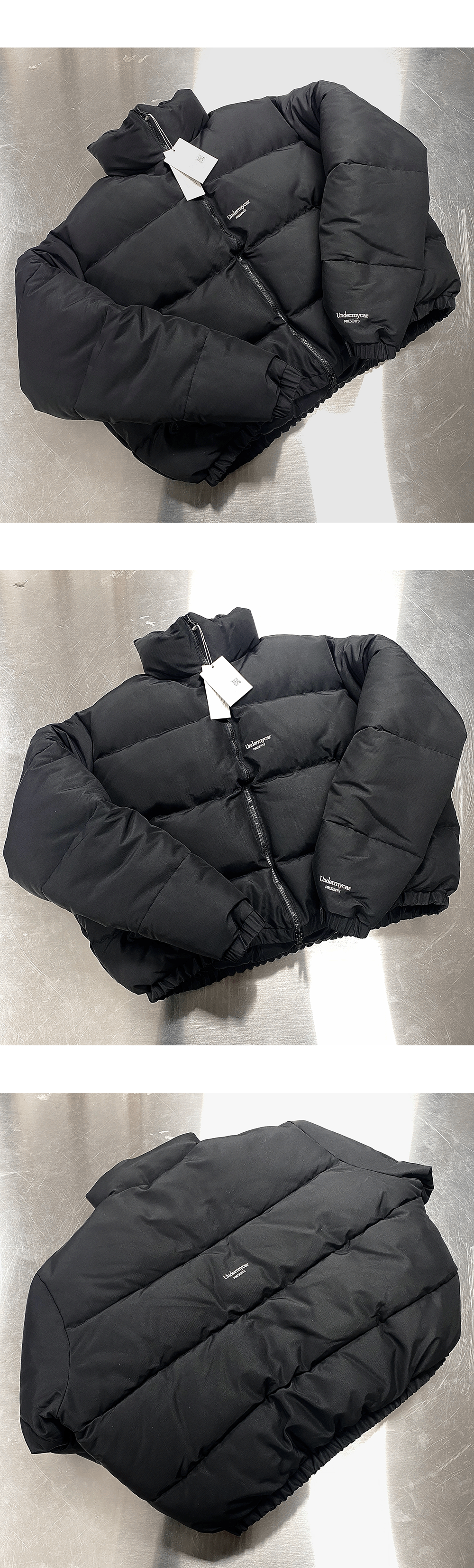 언더마이카 무.15 안티 Fxxking 로고 플레이 트리플 로고 크롭 패딩 자켓 블랙