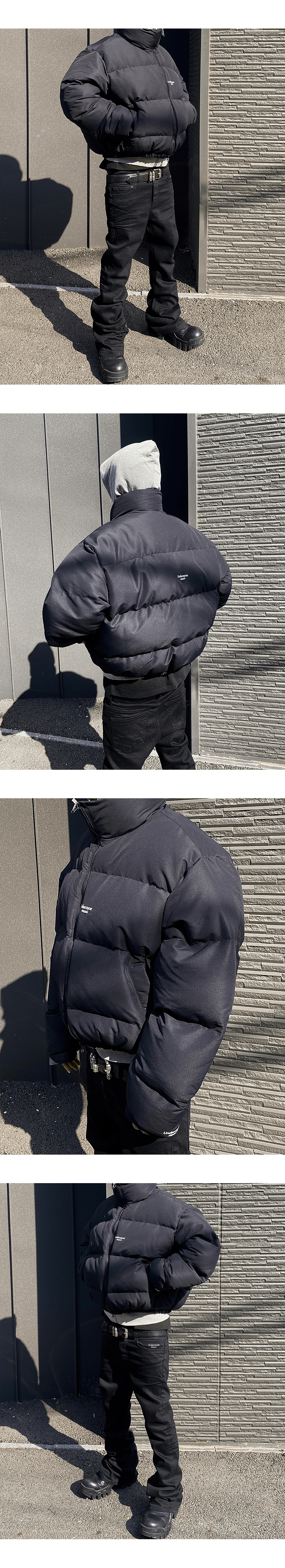 Undermycar Mu.15 Anti Fxxking Logo Play Triple Logo Crop Padding Jacket Black