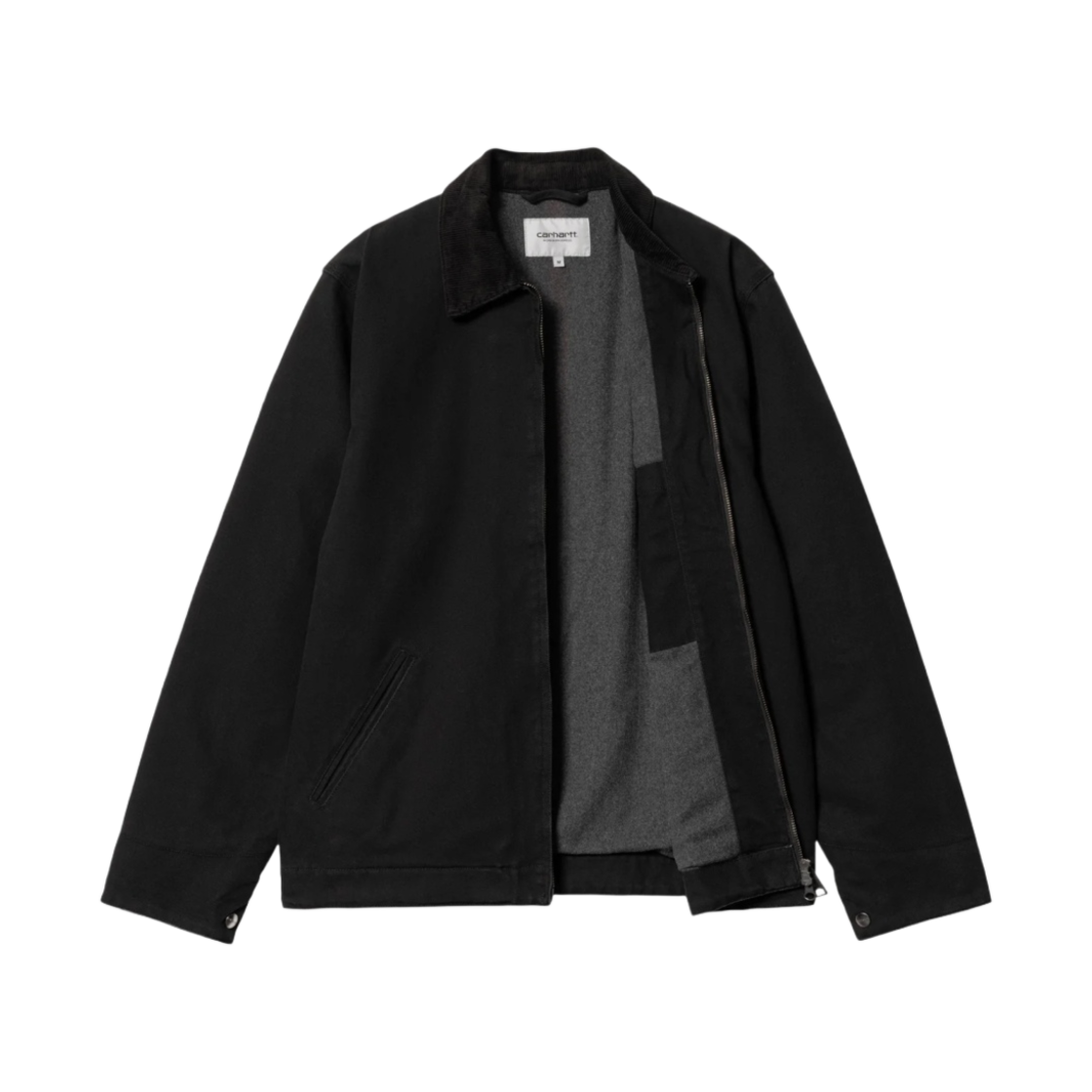 칼하트 WIP 라인드 디어본 캔버스 디트로이트 자켓 블랙 헤비 스톤 워시 - 윈터
