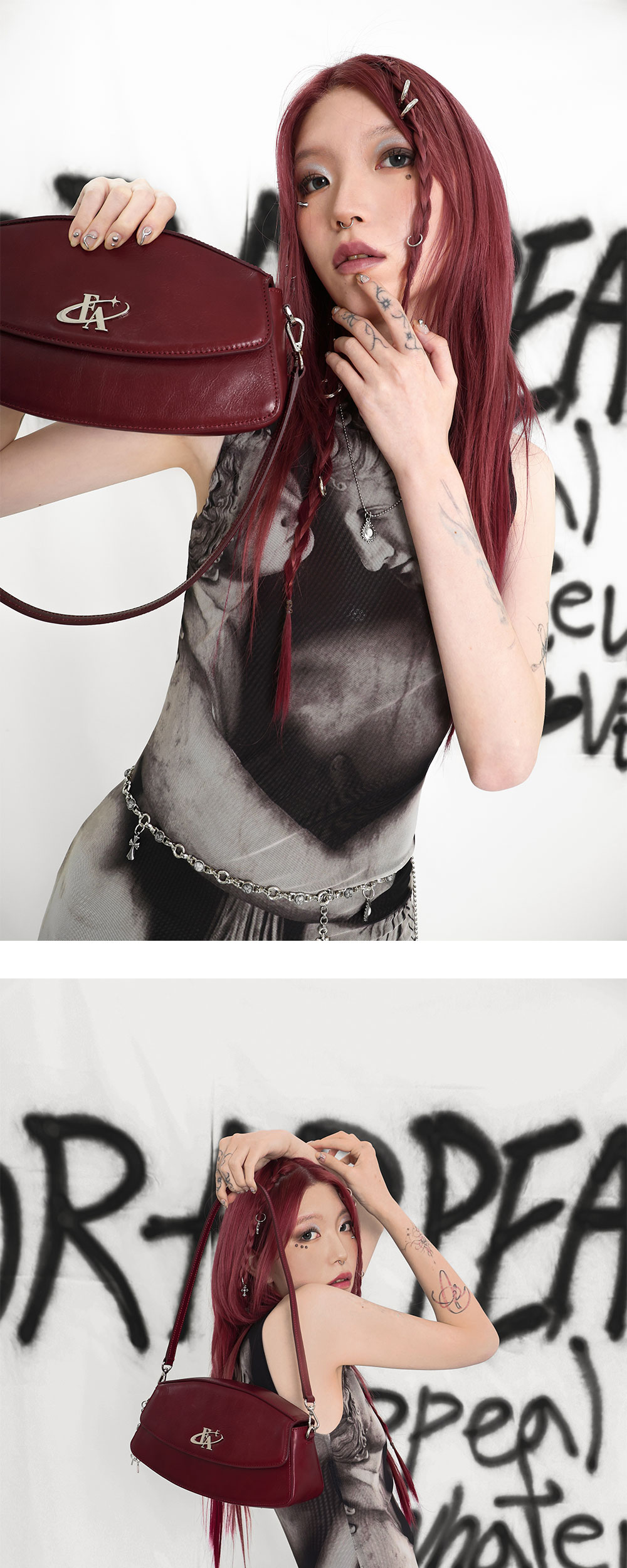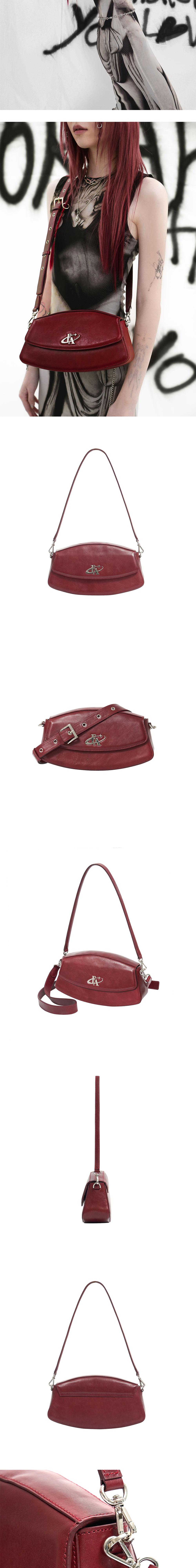 Outside : Cow-Leather Inside :Polyester Strap: Cow-Leather Pendant :Nickel 럭비공 모양의 유선형 디자인 볼드한 로고 팬던트, 스트랩 아일렛이 포인트 마그네틱 오픈-클로징으로 안전한 수납 가능 클러치,숄더,크로스 3way