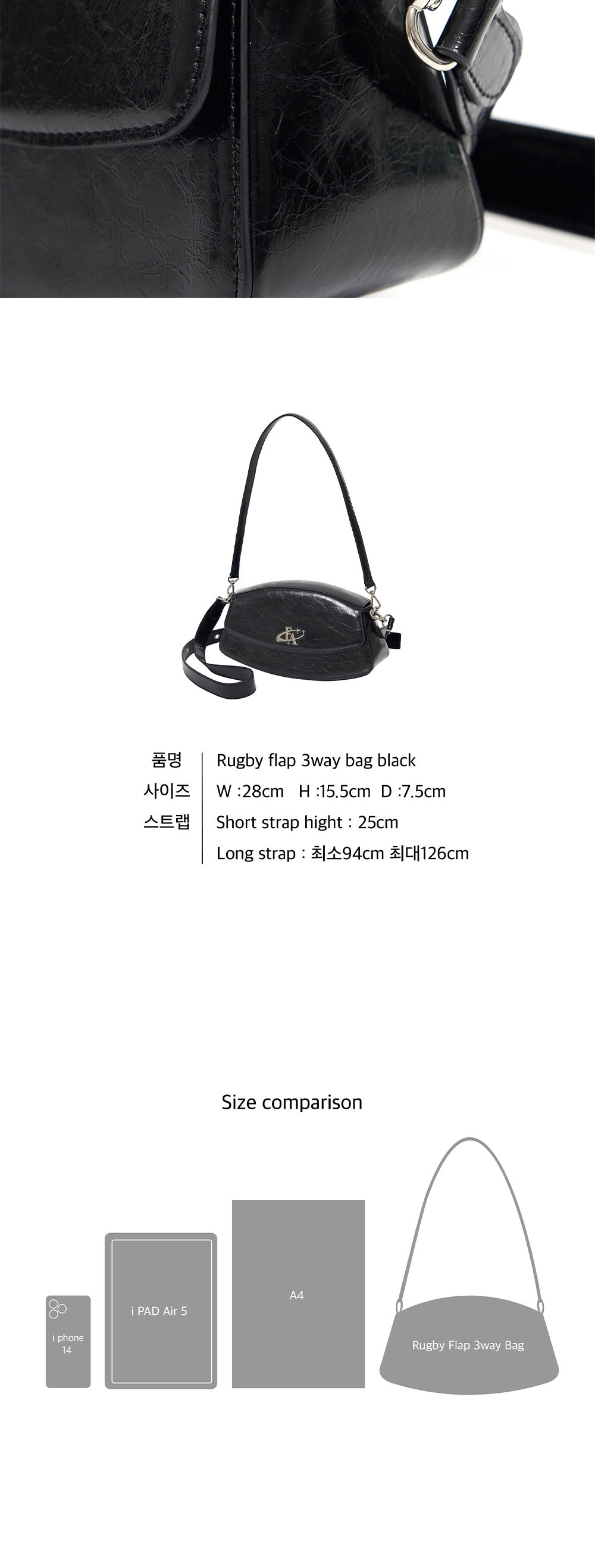 Outside : Cow-Leather Inside :Polyester Strap: Cow-Leather Pendant :Nickel 럭비공 모양의 유선형 디자인 볼드한 로고 팬던트, 스트랩 아일렛이 포인트 마그네틱 오픈-클로징으로 안전한 수납 가능 클러치,숄더,크로스 3way