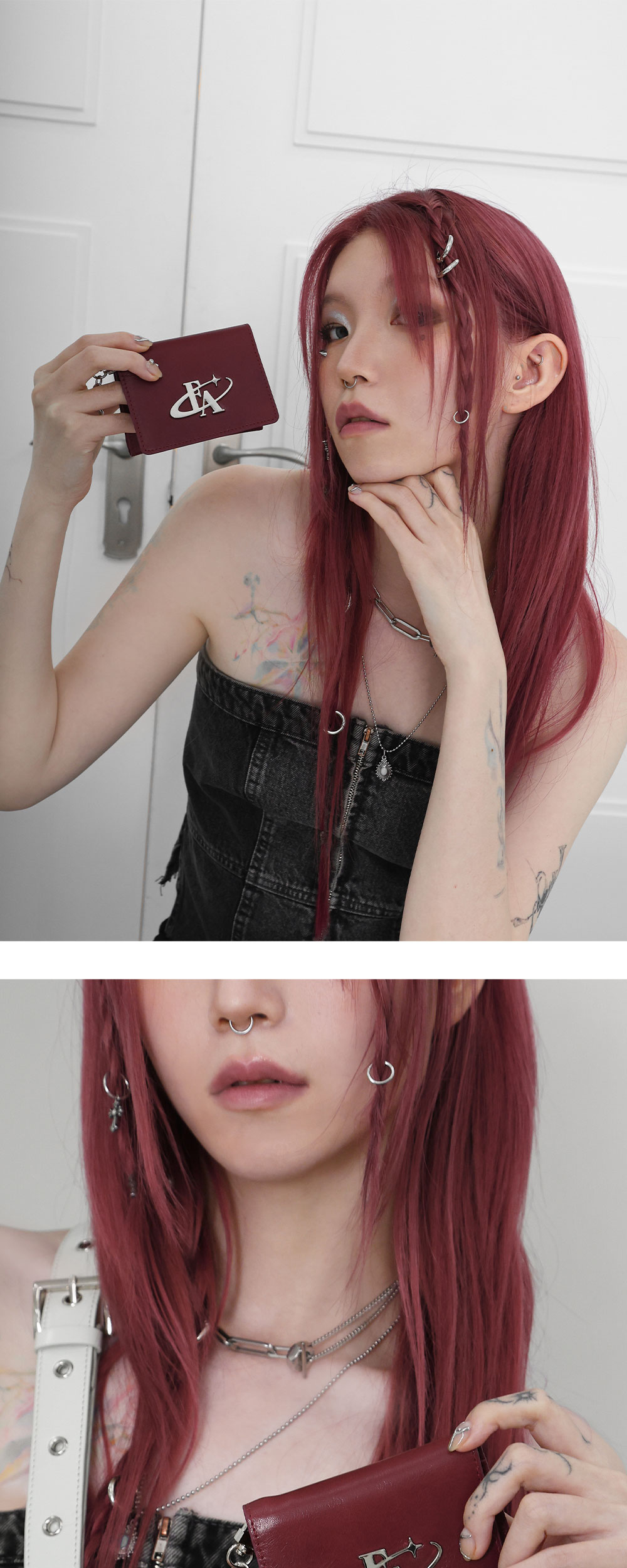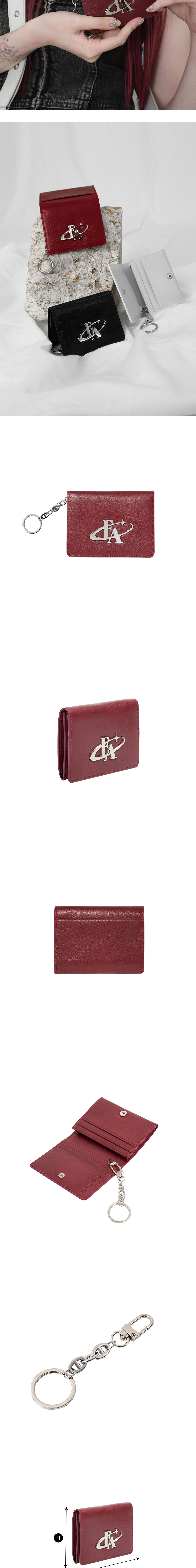 COW LEATHER SURGICAL CHAIN 카드포켓6개 , 중앙 수납칸1개 탈부착이 가능한 키링 제공 한 손에 잡히는 컴팩트한 사이즈 ‘blod logo’ 팬던트 장식이 특징인 카드지갑