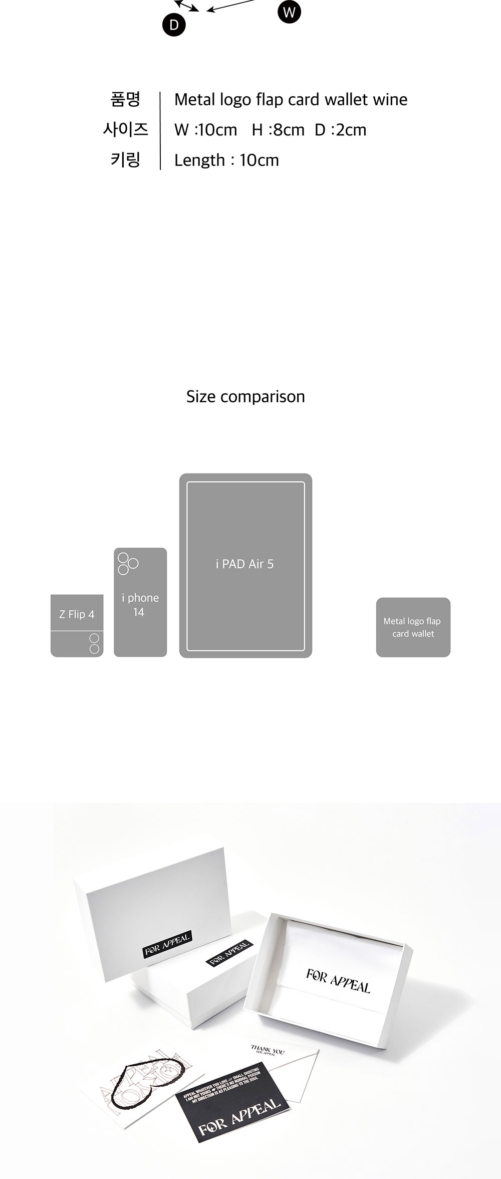 포어필 메탈 로고 플랩 카드 월렛 와인