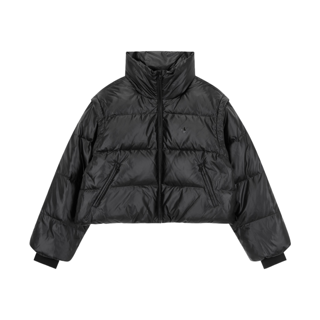 (W) Calvin Klein Jeans Glossy Detachable Cropped Down Puffer CK Black