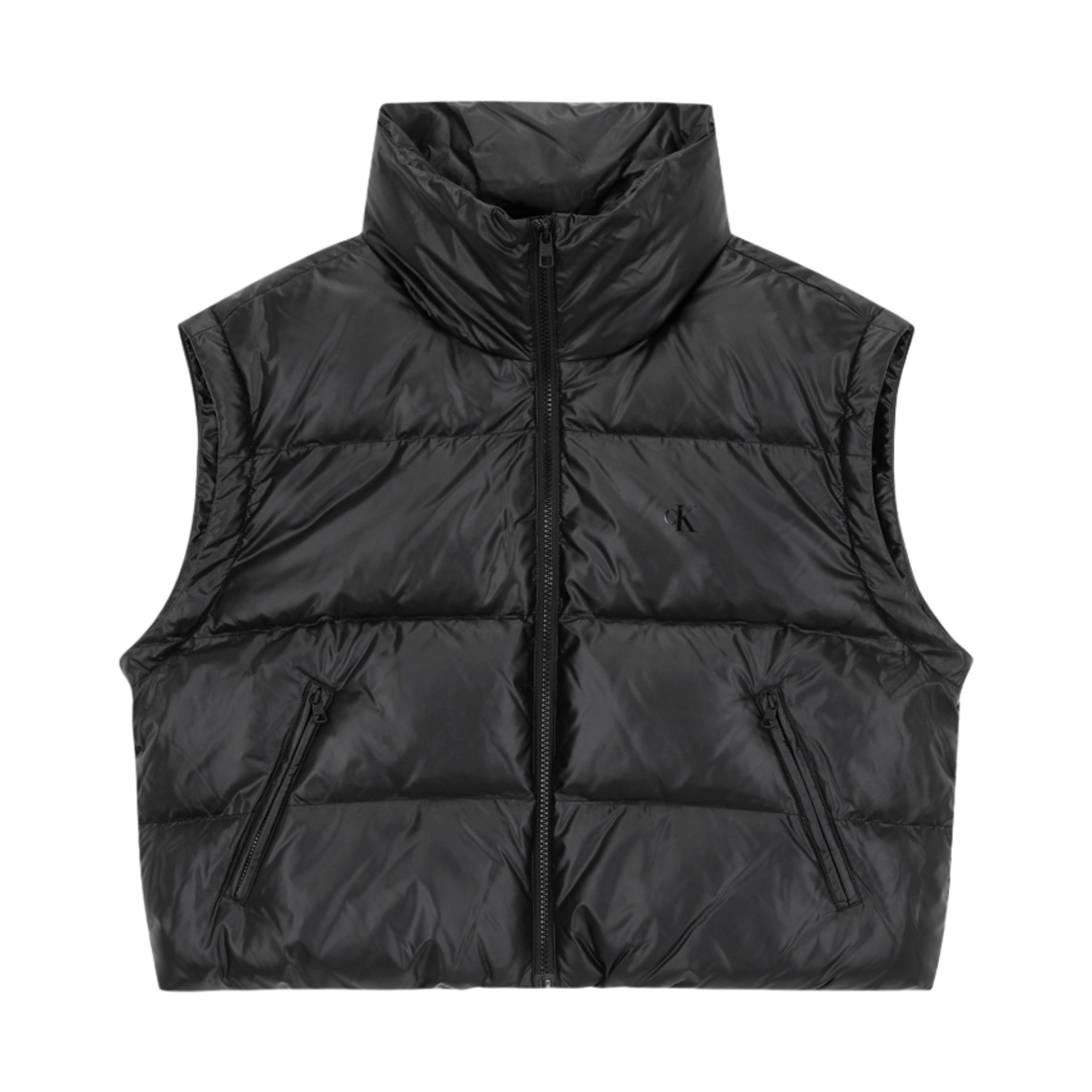 (W) 캘빈 클라인 진스 글로시 디터쳐블 크롭 다운 푸퍼 CK 블랙