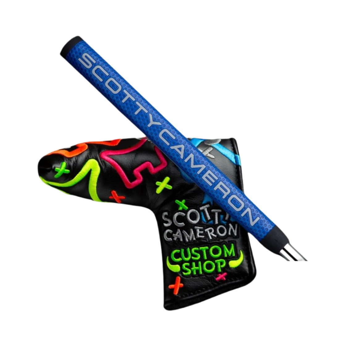 타이틀리스트 스카티 카메론 스페셜 셀렉트 델 마르 모토 정크 야드 도그 네온 프리스타일 헤드커버 블루 마타도르 그립 퍼터 34.5인치 블루 실버