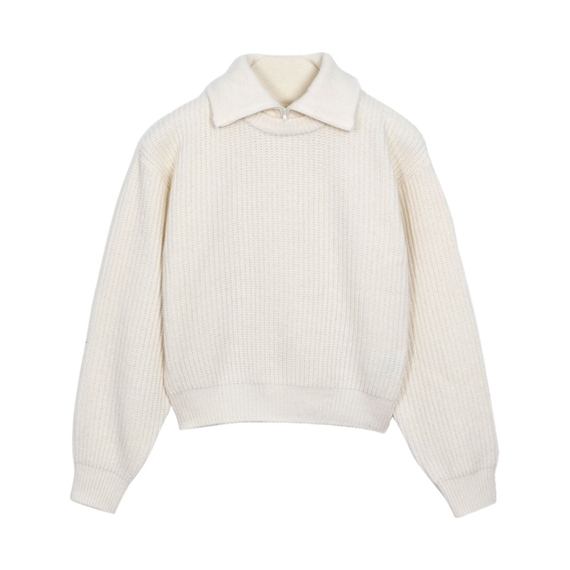 (W) 헤이그 어 넥 집업 니트 아이보리
