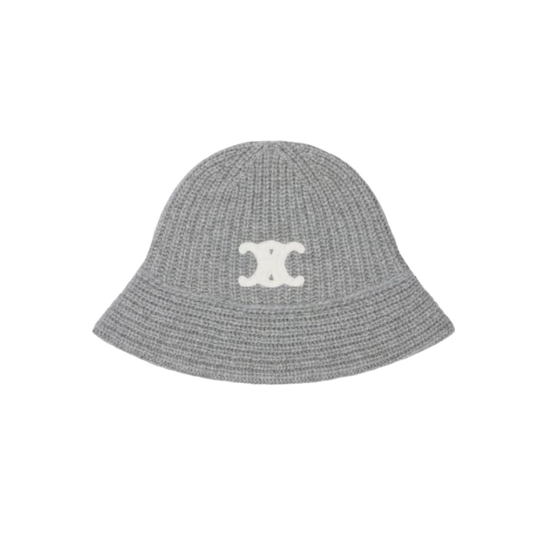 (W) 셀린느 심리스 캐시미어 트리옹프 자수 버킷햇 미디움 그레이