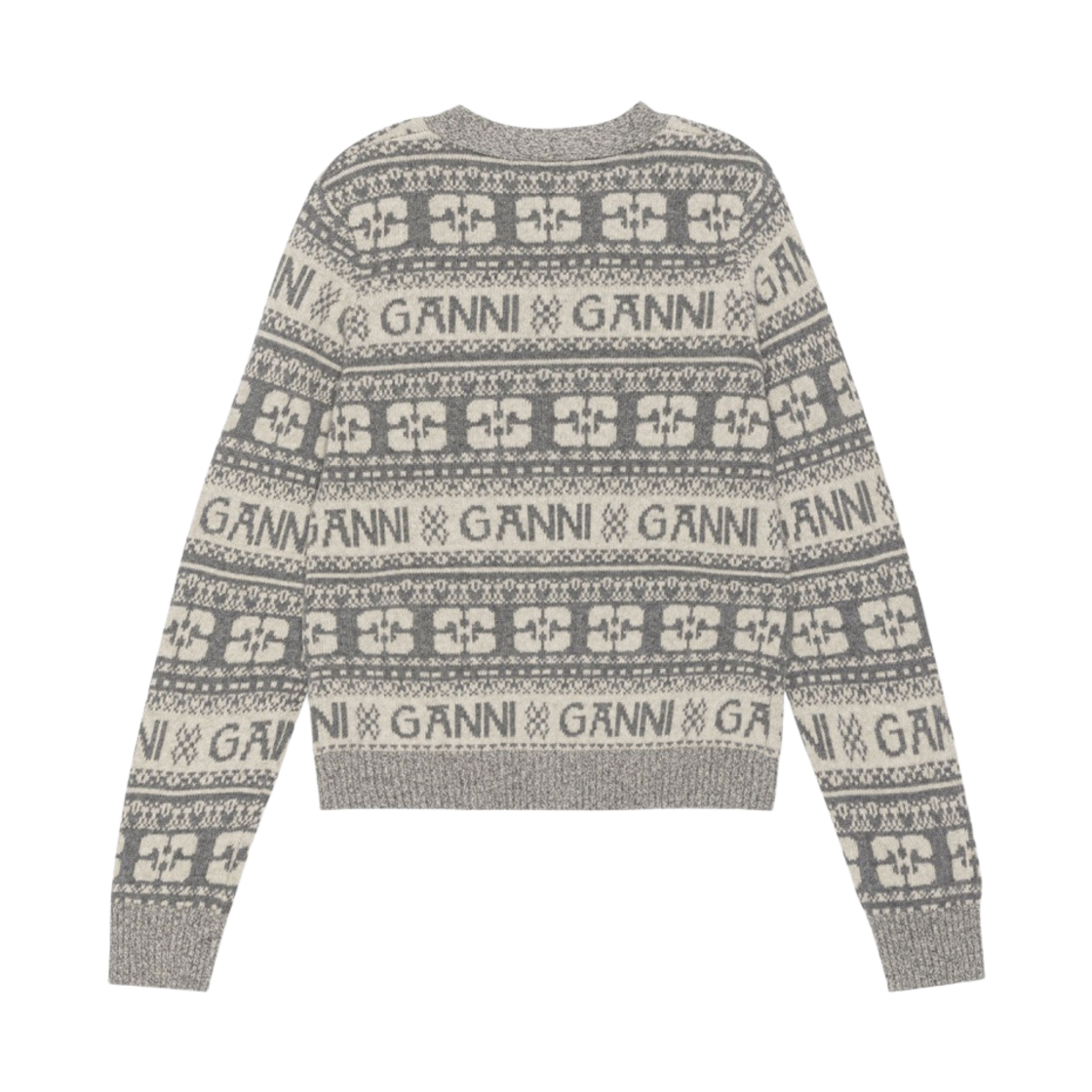 (W) 가니 로고 울 믹스 가디건 프로스트 그레이