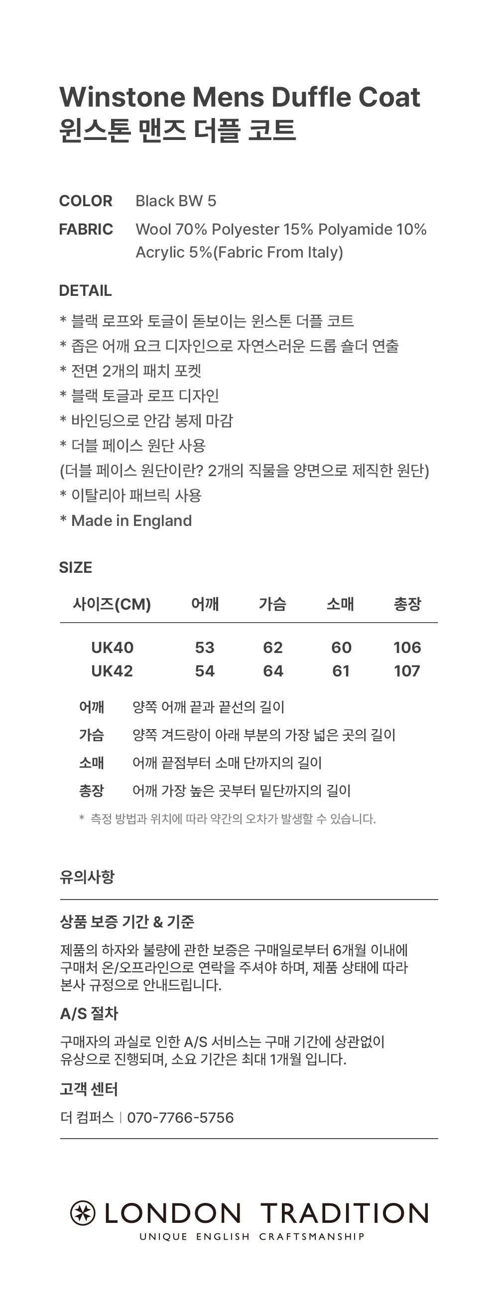 런던 트레디션 윈스톤 맨즈 더플 코트 블랙 BW 5