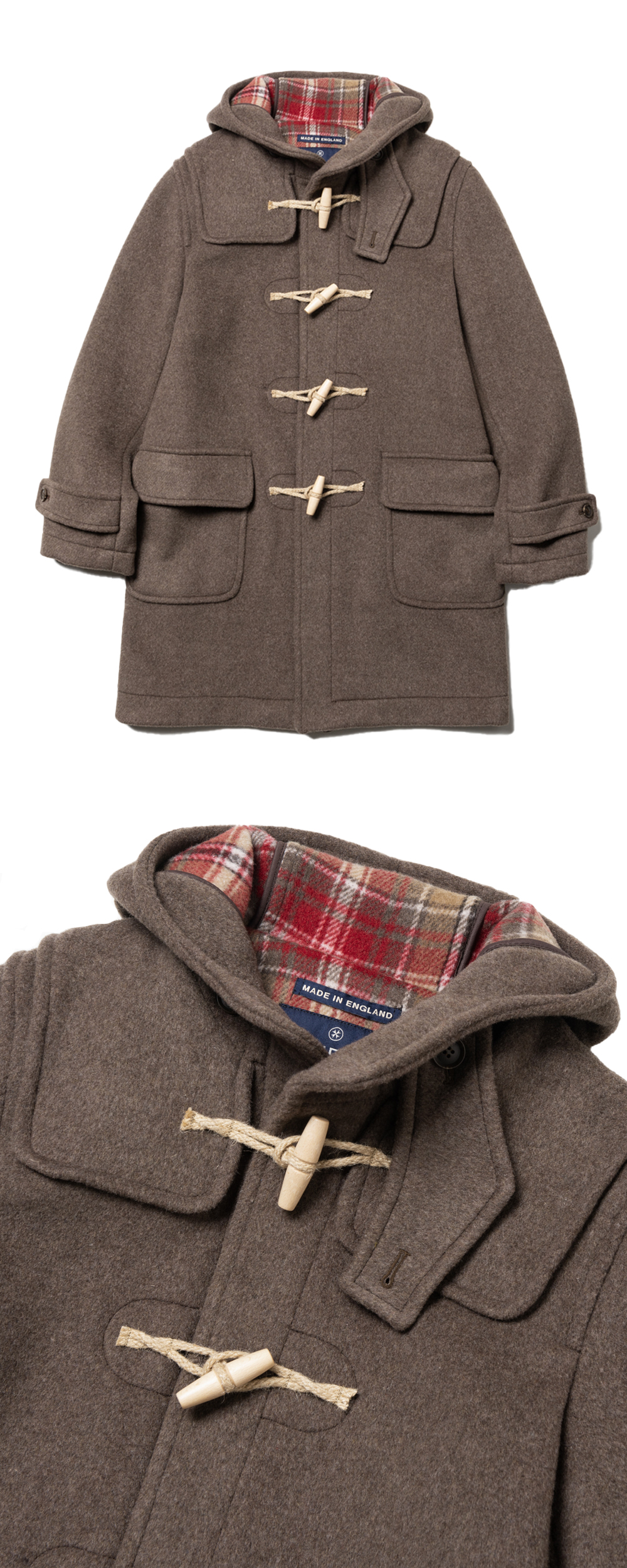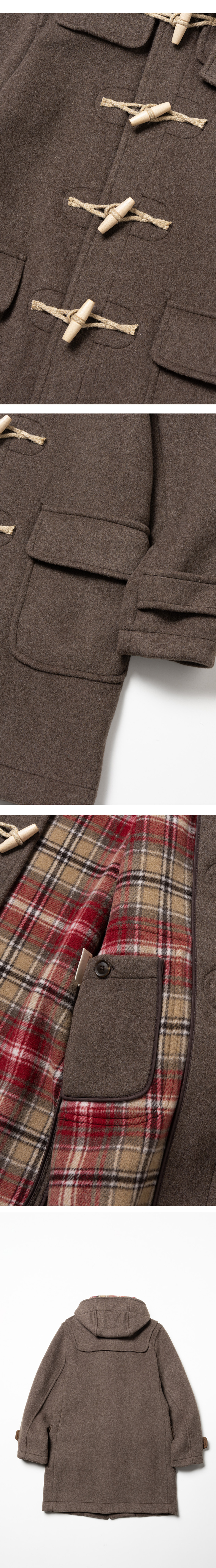 LONDON TRADITION Mens Erica Duffle Coat DK. Mushroom 226 런던 트레디션 멘즈 에리카 더플 코트 다크 머쉬룸 226 런던트레디션 스테디 셀러 더플 코트 어깨 요크, 나무 토글과 로프 디자인 전면 2개의 플랩 패치 포켓 1개의 이너 포켓 바인딩으로 안감 봉제 마감 더블 페이스 원단 사용 (더블 페이스 원단이란? 2개의 직물을 양면으로 제직한 원단) 이탈리아 패브릭 사용