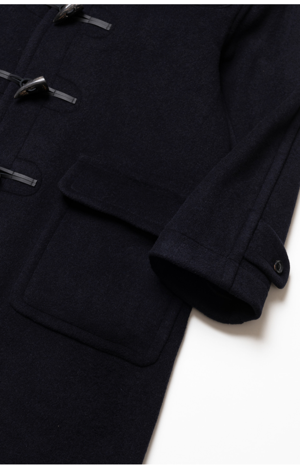 LONDON TRADITION Milford Mens Oversize Duffle Coat Navy BW 28 런던 트레디션 밀포드 맨즈 오버사이즈 더플 코트 네이비 BW 28 후드 스트랩과 둥근 요크 디테일이 돋보이는 밀포드 오버사이즈 더플 코트 가죽과 소뿔 버튼 사용 소매 스트랩 디테일 더블 페이스의 이탈리아 수입 원단 사용 유니크한 안쪽 체크 패턴 오버사이즈 실루엣