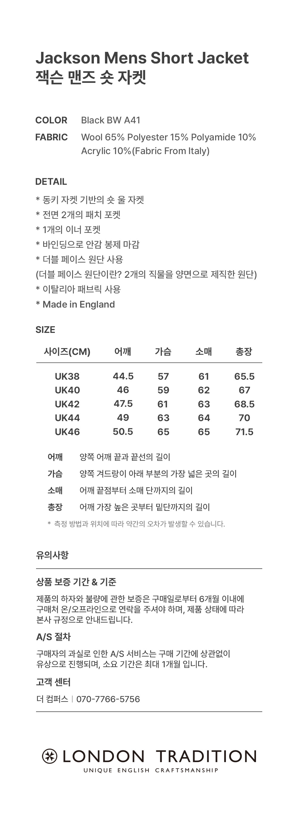 런던 트레디션 잭슨 맨즈 숏 자켓 블랙 BW A41