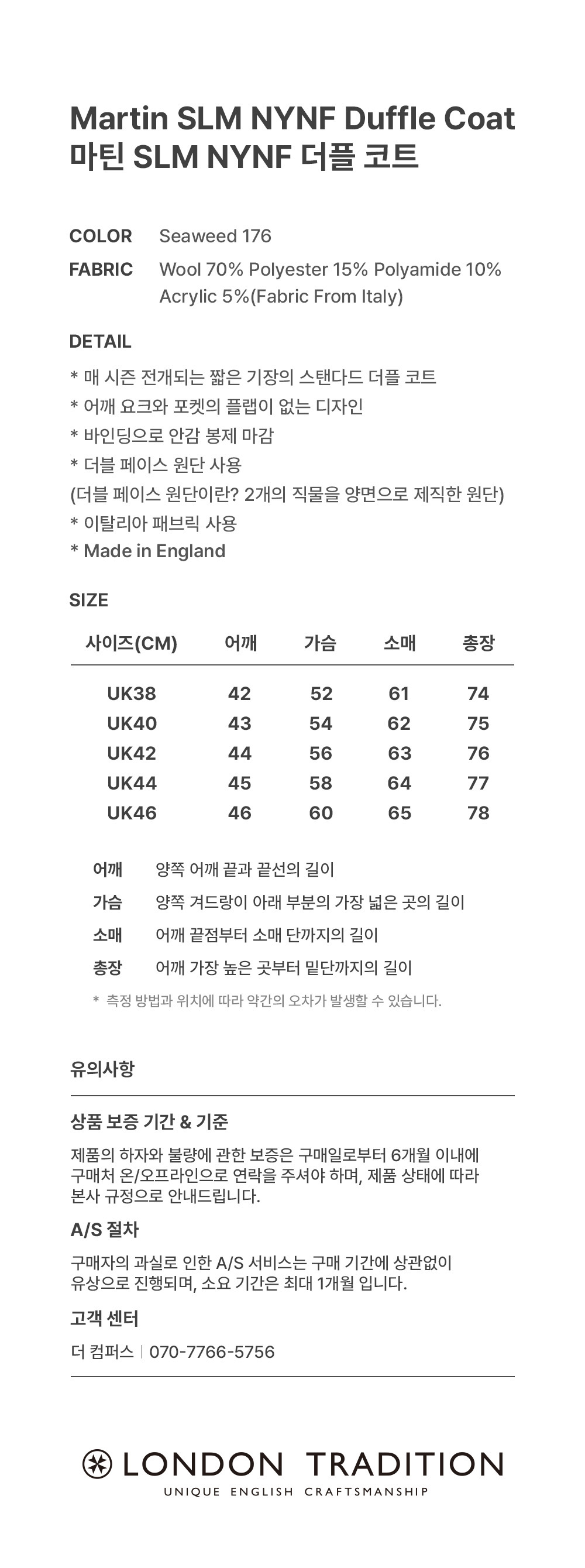 런던 트레디션 마틴 SLM NYNF 더플 코트 시위드 176