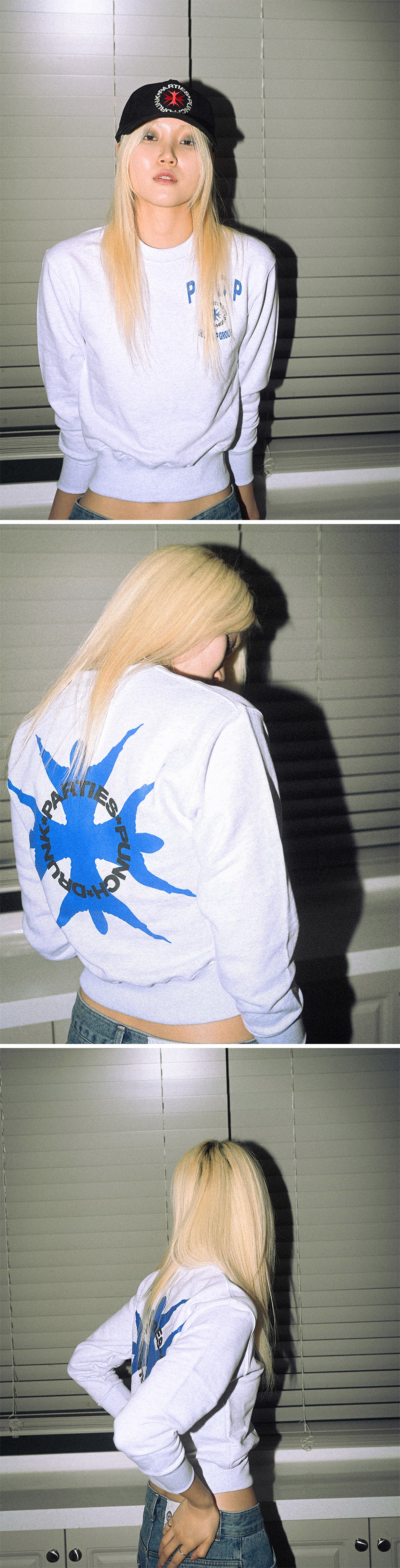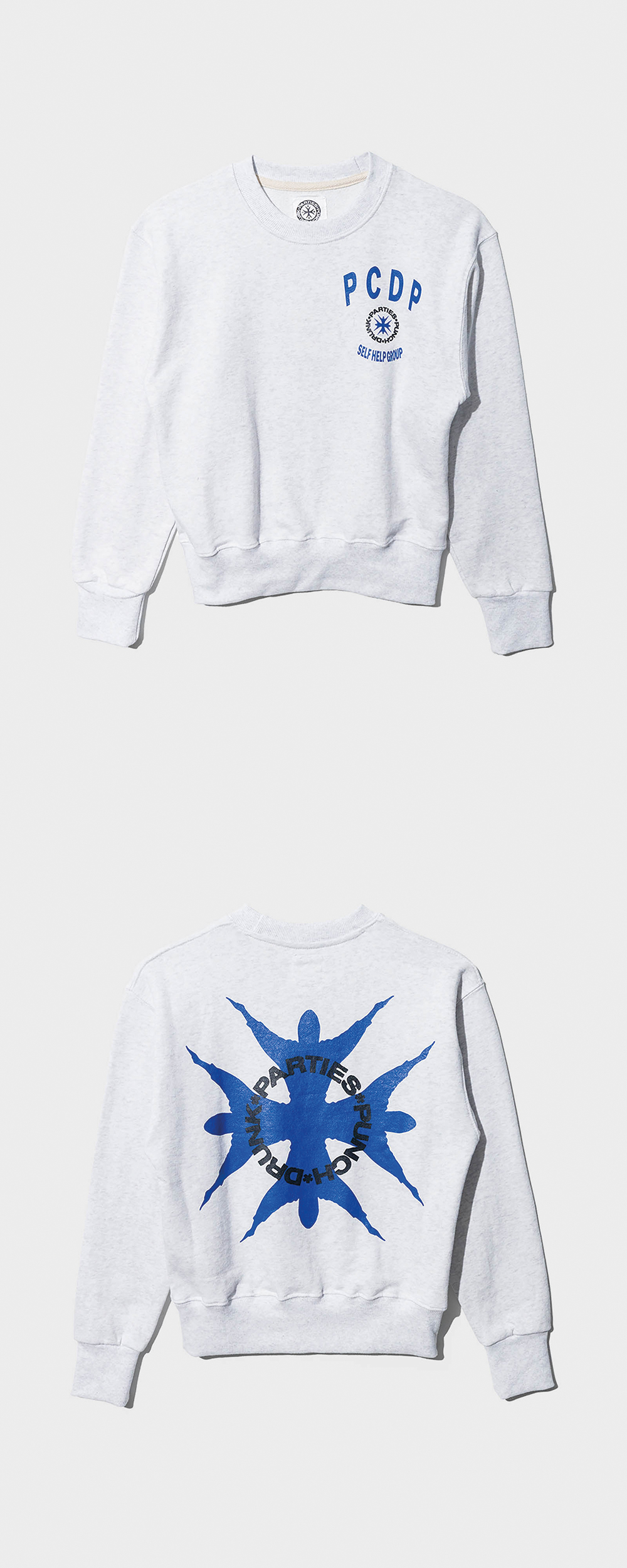 펀치 드렁크 파티즈 PCDP 크롭 스웻셔츠 멜란지 화이트
