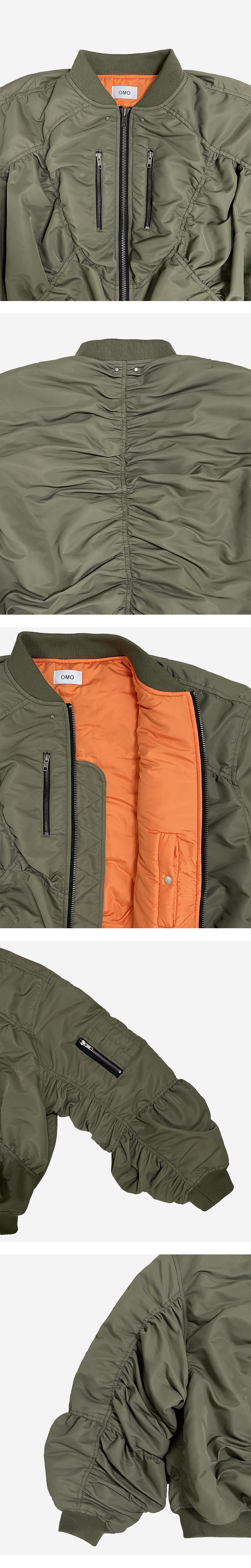 오엠오 라바 셔링 봄버 자켓 카키