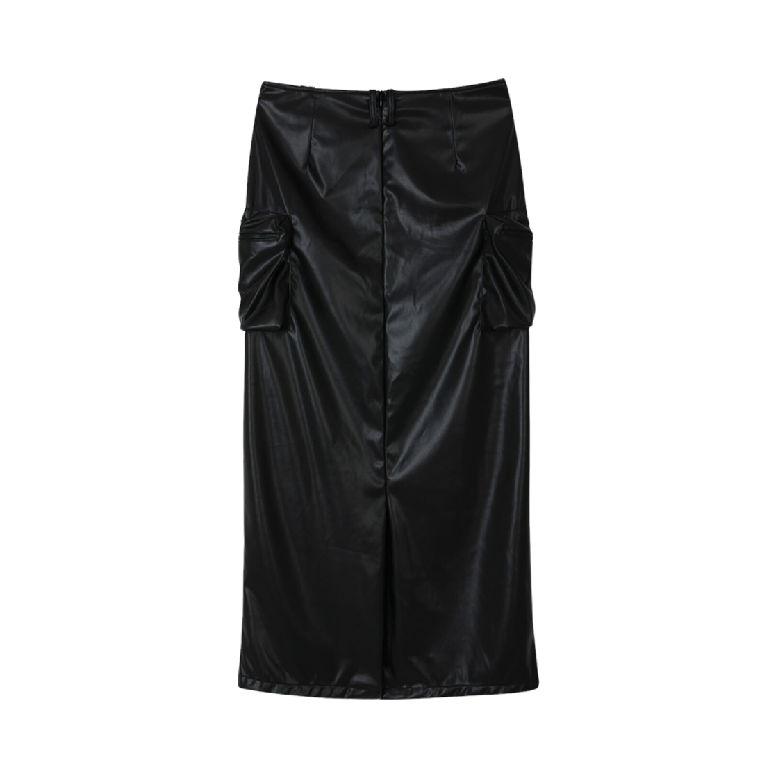 (W) Bohemian Seoul Two Pocket Leather Maxi Skirt Black