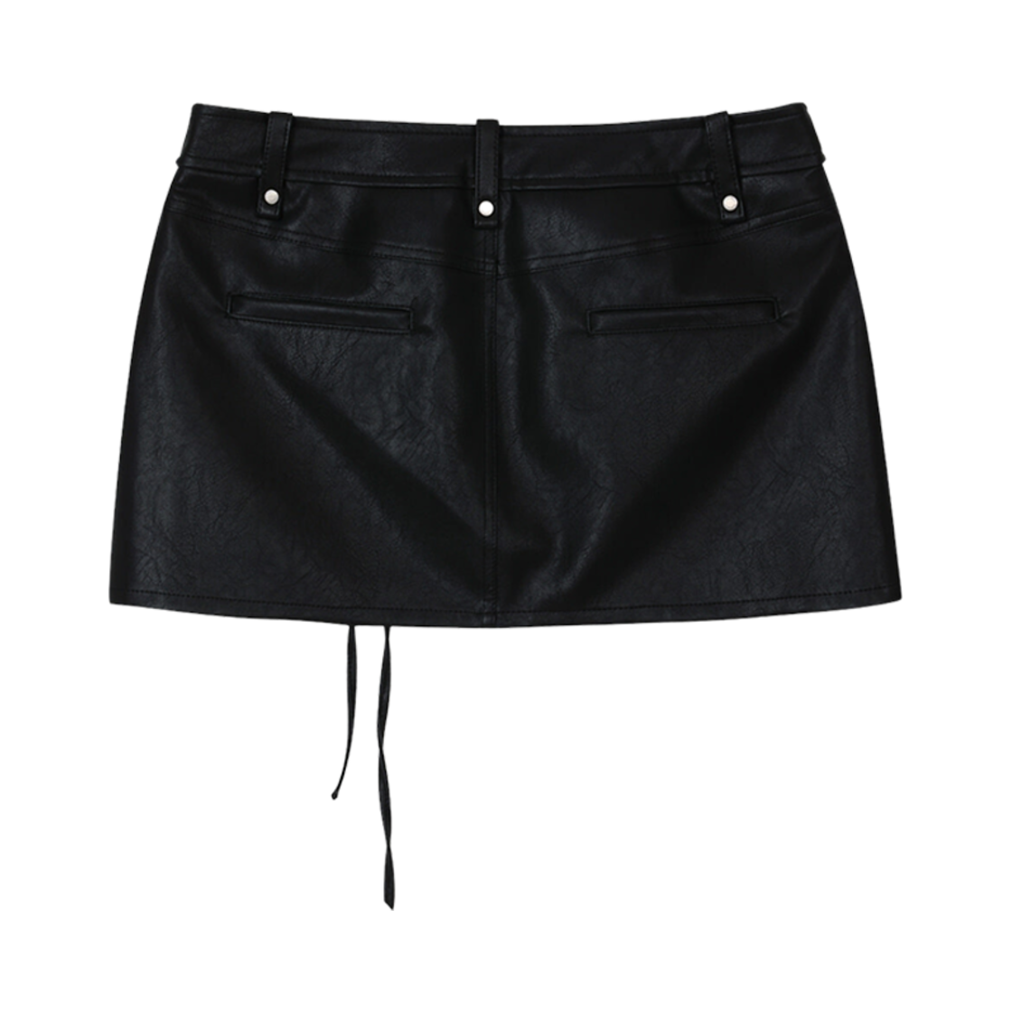 (W) Bohemian Seoul Low Cargo Leather Mini Skirt Black