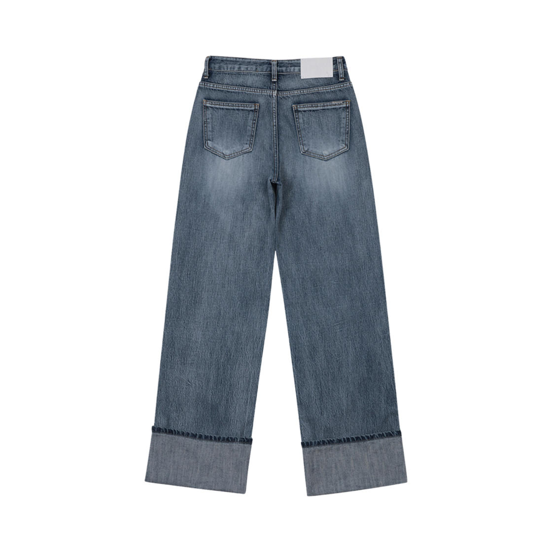 (W) Bohemian Seoul Wide Rollup Denim Pants Rain Blue