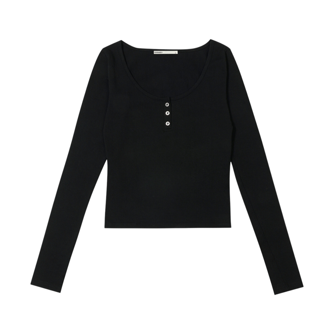 (W) 보헤미안 서울 베이직 라운드 버튼 롱슬리브 티셔츠 블랙