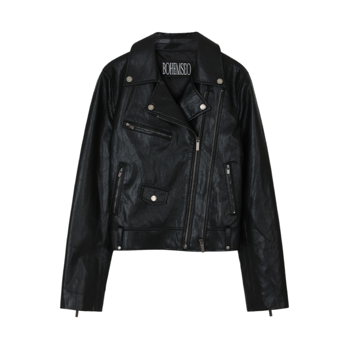 (W) Bohemian Seoul Two Zipper Fitted Rider Jacket Black