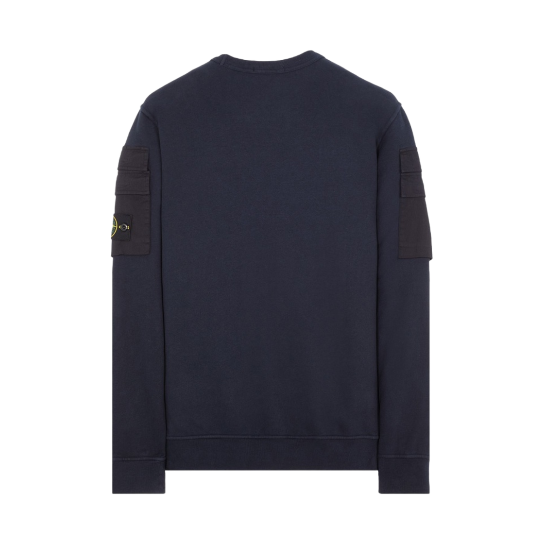 Stone Island 60577 Brushed Cotton Fleece Garment Dyed Double Pocket Crewneck Sweatshirt Navy Blue - 23FW