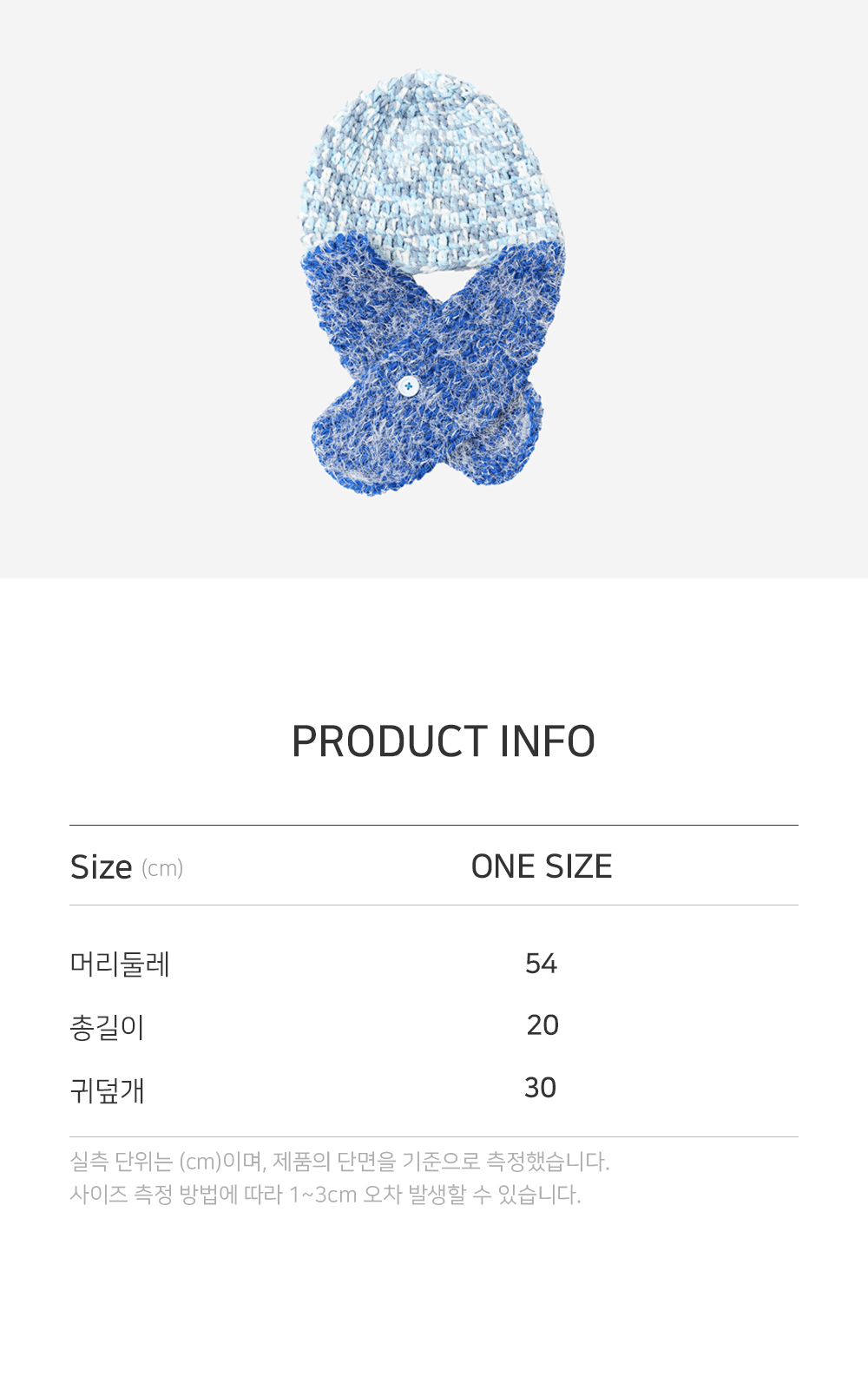 니트짜임의 구조에 따라 제품 사이즈가 1~2cm 정도 차이 날 수 있습니다.