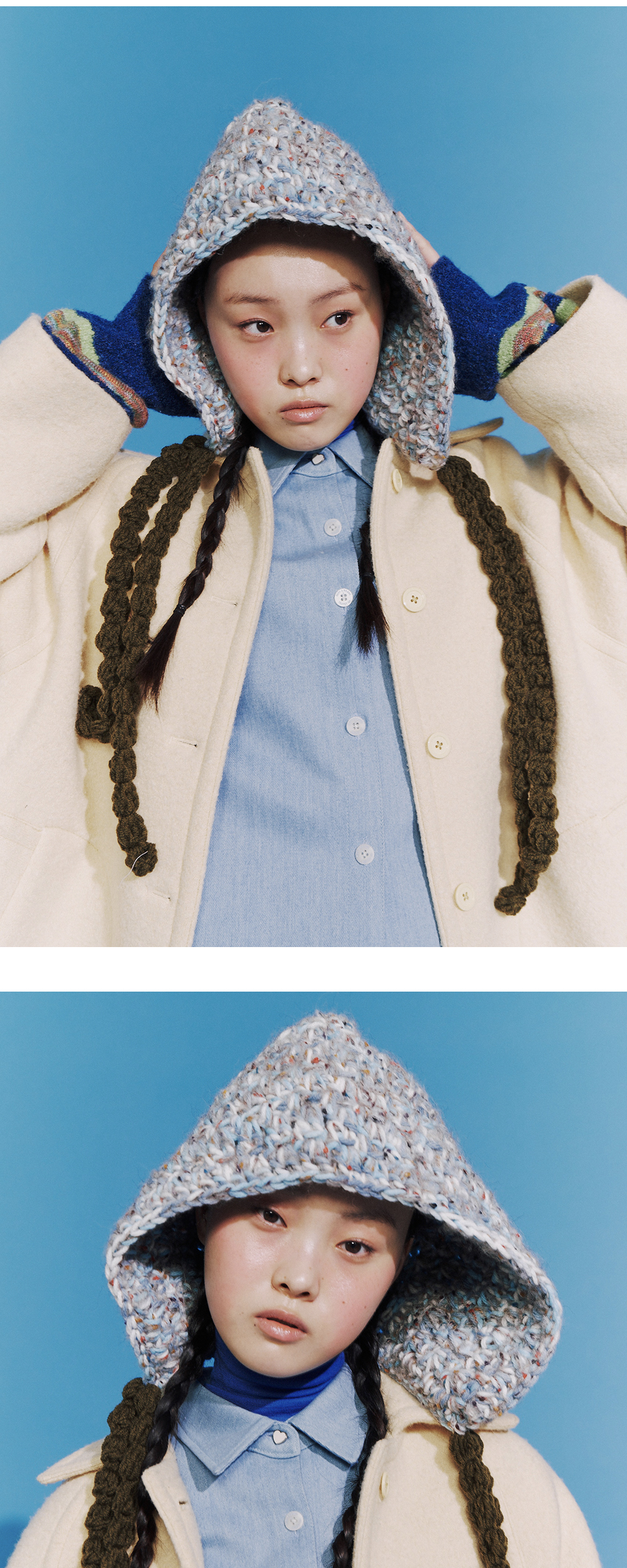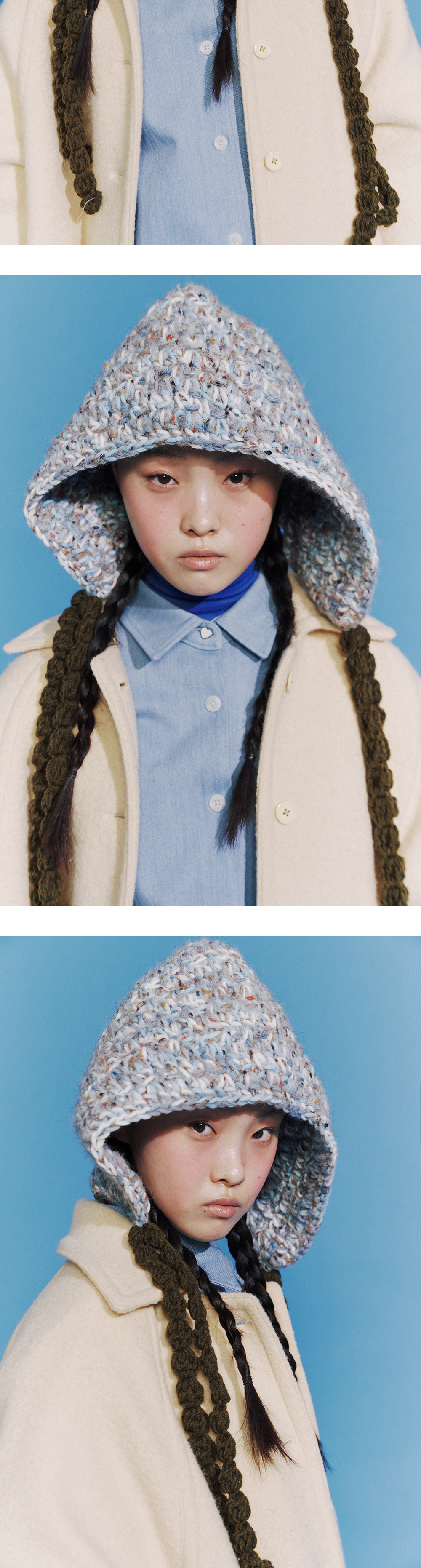 * 100% 핸드메이드 모자입니다. * 다양한 컬러 베리에이션이 특징인 오버사이즈의 후드입니다. * 모헤어 혼용으로 부드러운 촉감이 특징입니다. * 볼드 한 짜임의 스트랩으로 고정력이 우수하며 다양한 연출이 가능합니다.