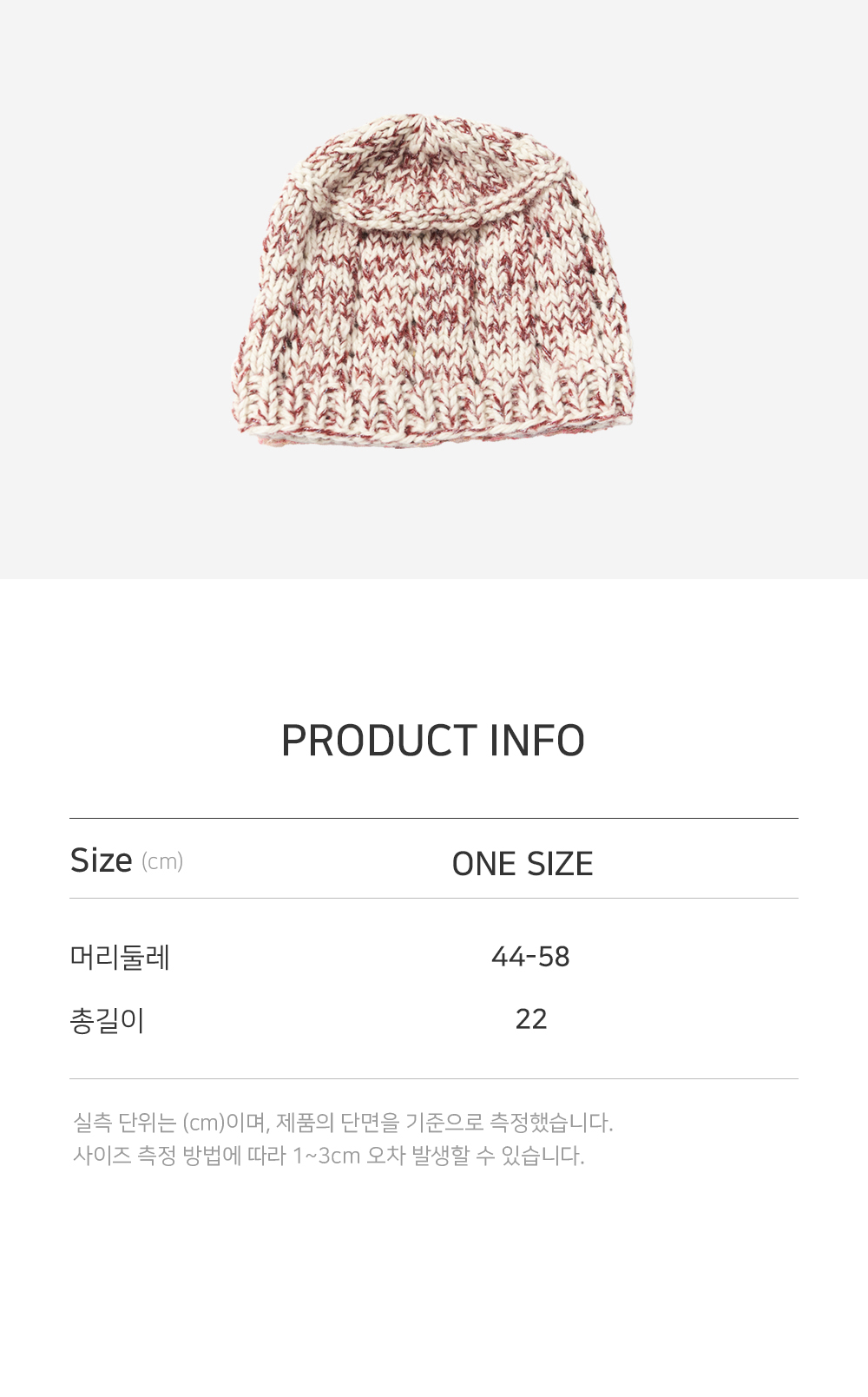 니트짜임의 구조에 따라 제품 사이즈가 1~2cm 정도 차이 날 수 있습니다.