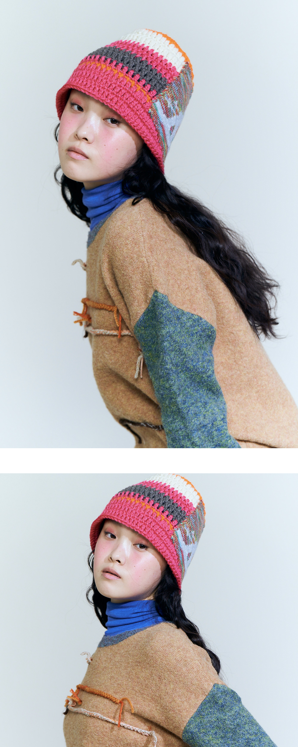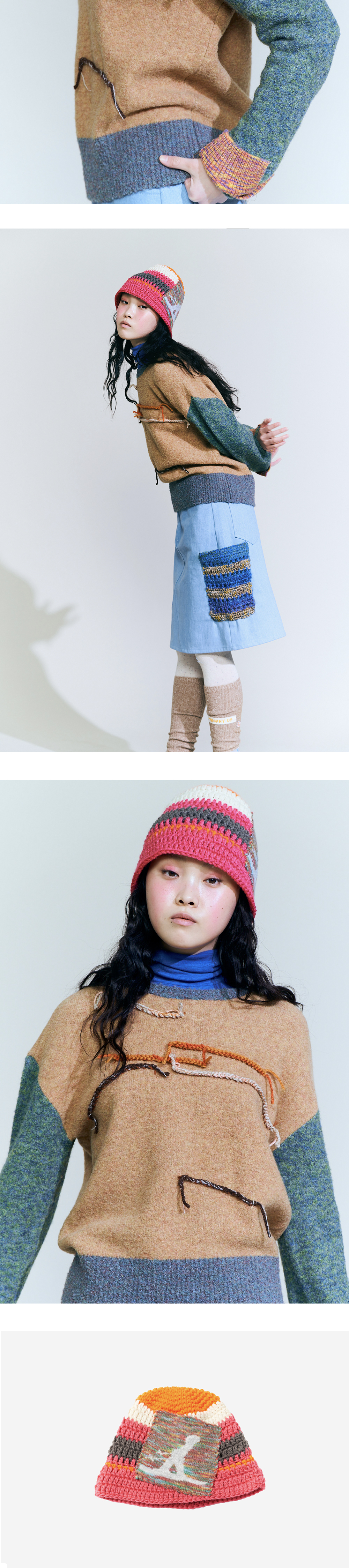 * 100% 핸드메이드 모자입니다. * 스키 니트 패치가 포인트인 버켓입니다. * 조화로운 컬러 배색과 볼드 한 니트 짜임 디테일이 특징입니다.