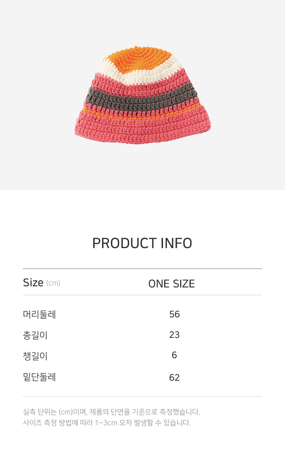 니트짜임의 구조에 따라 제품 사이즈가 1~2cm 정도 차이 날 수 있습니다.