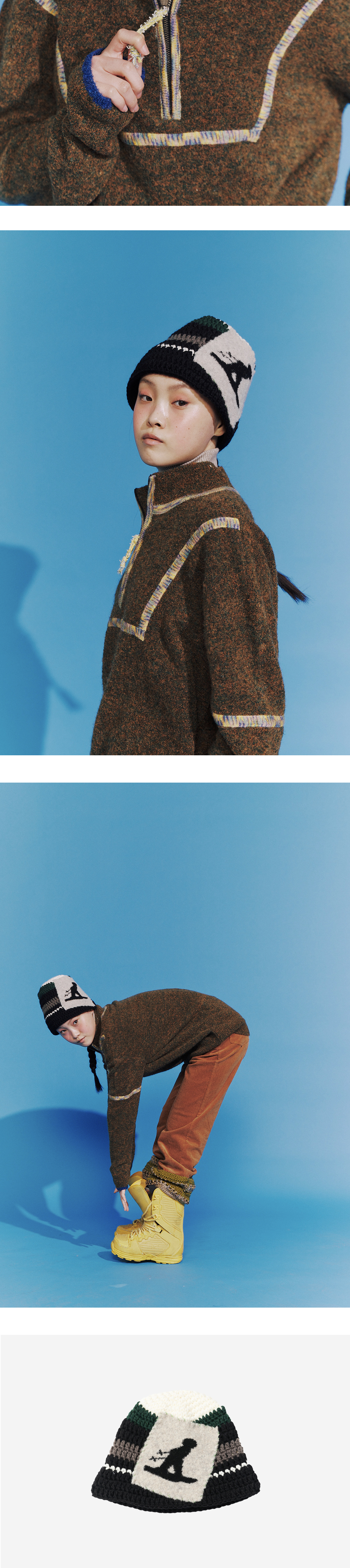 * 100% 핸드메이드 모자입니다. * 스키 니트 패치가 포인트인 버켓입니다. * 조화로운 컬러 배색과 볼드 한 니트 짜임 디테일이 특징입니다.