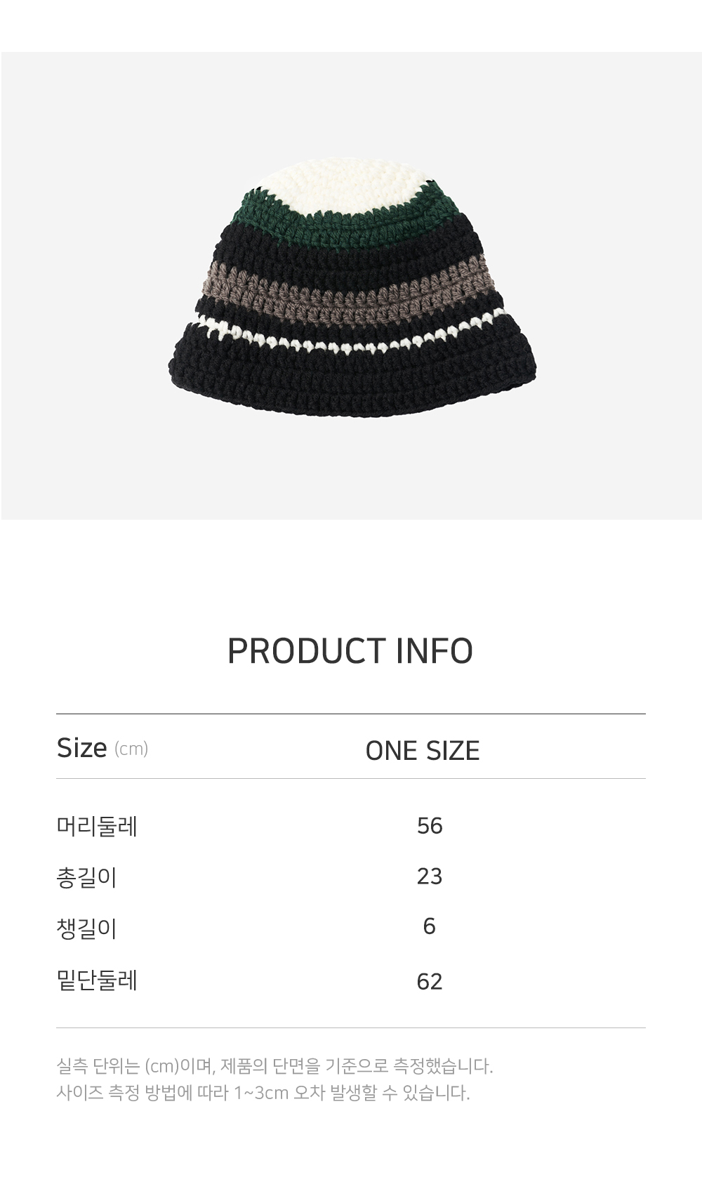 니트짜임의 구조에 따라 제품 사이즈가 1~2cm 정도 차이 날 수 있습니다.