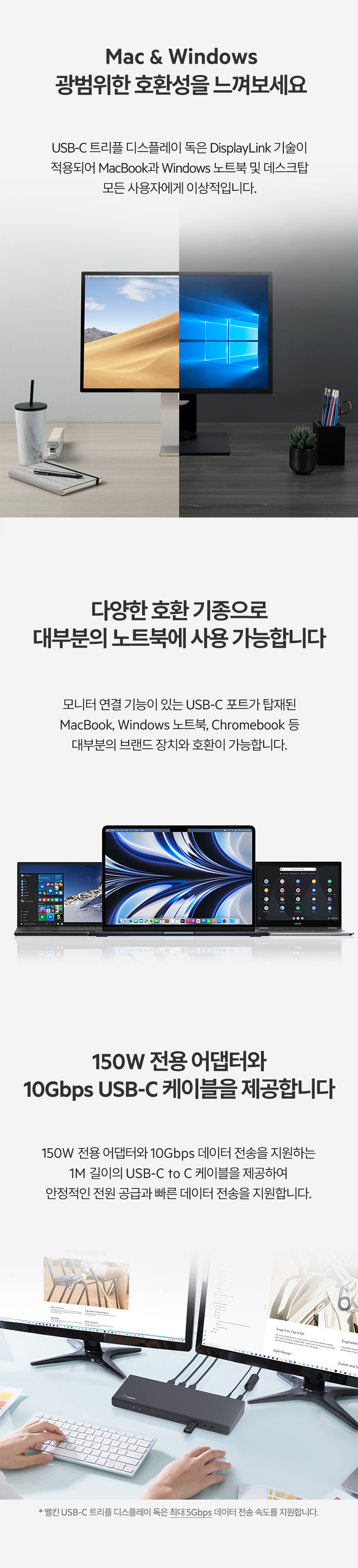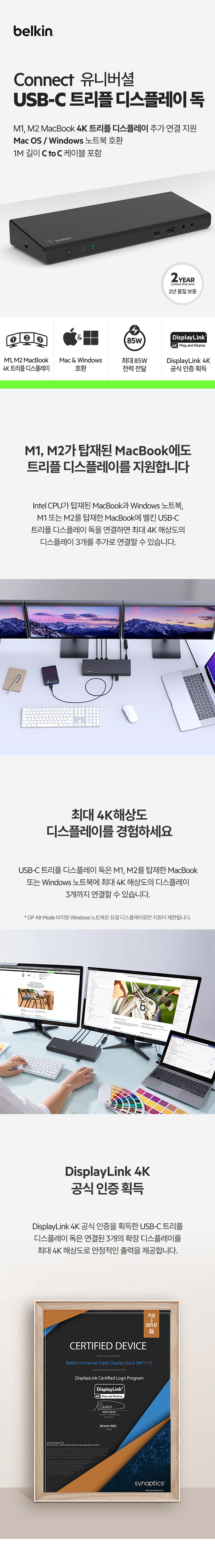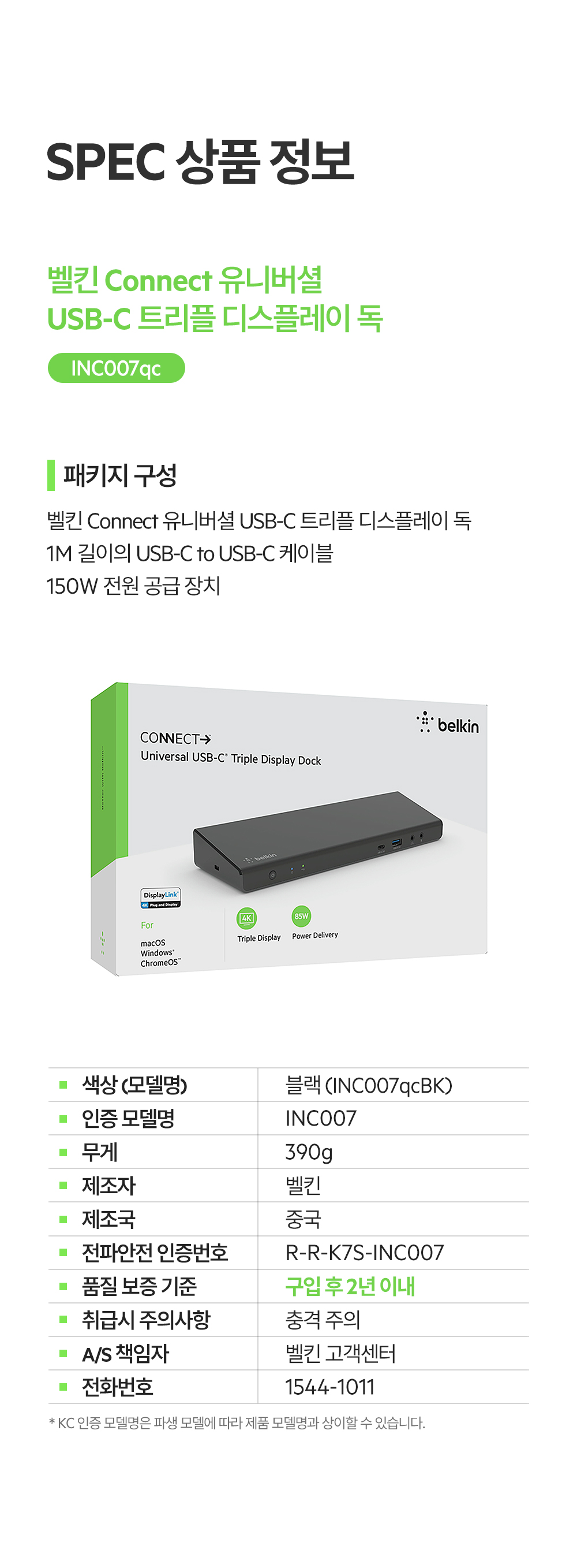 벨킨 유니버셜 USB-C 트리플 디스플레이 도킹스테이션 멀티허브 INC007qc