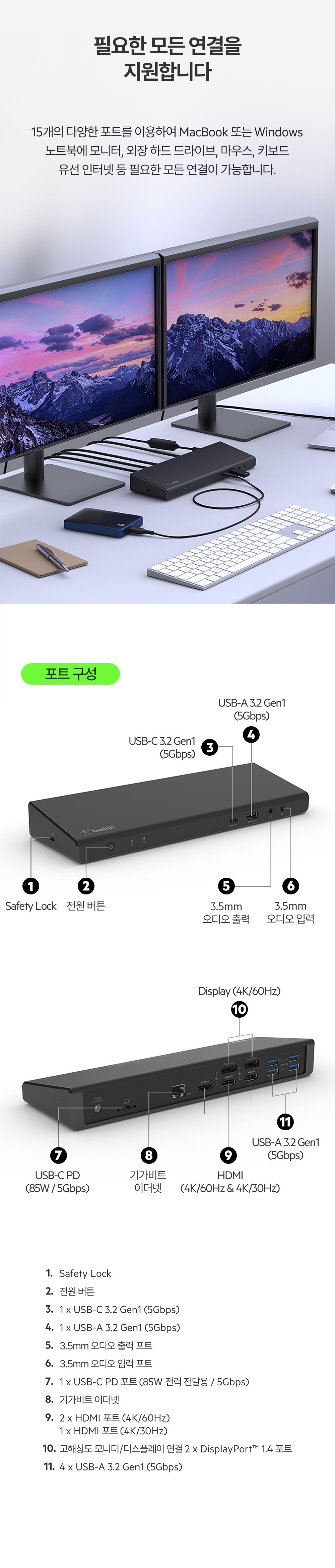 벨킨 유니버셜 USB-C 트리플 디스플레이 도킹스테이션 멀티허브 INC007qc