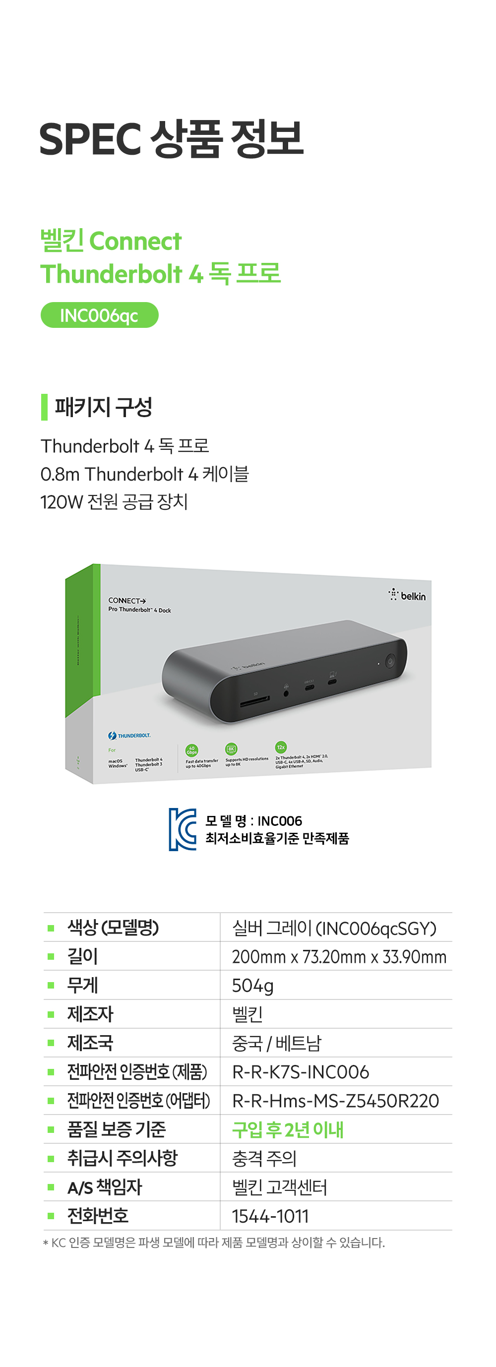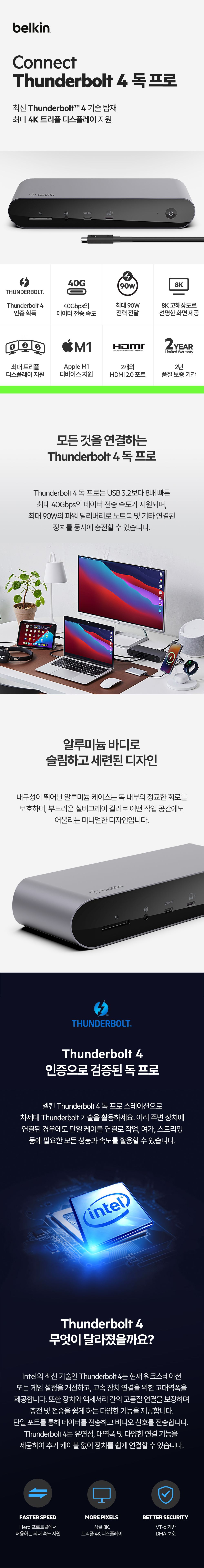 벨킨 썬더볼트 4 독 도킹스테이션 C타입 멀티 허브 INC006
