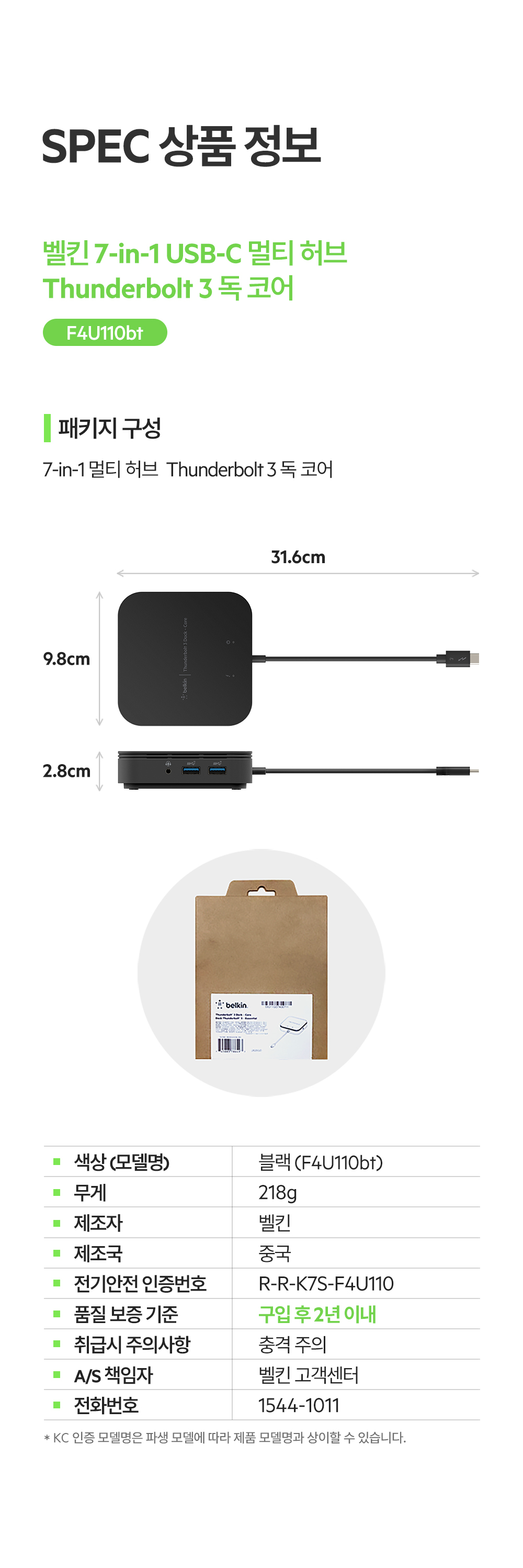 벨킨 7in1 썬더볼트 3 독 멀티 허브 F4U110bt