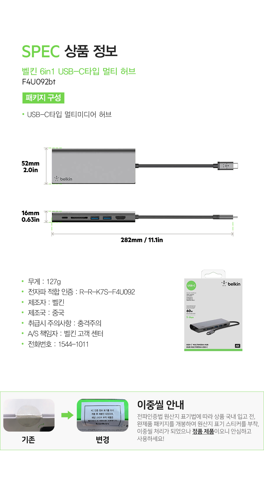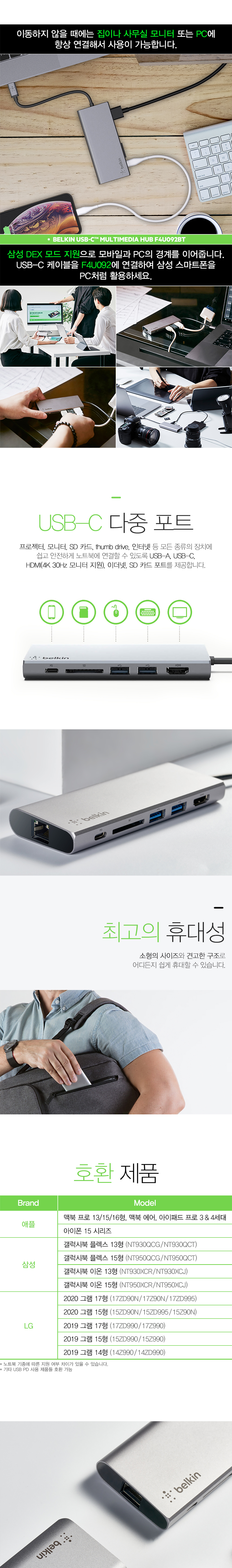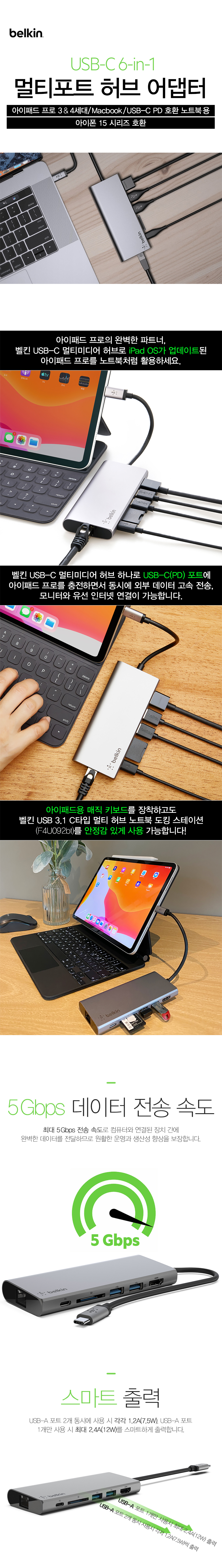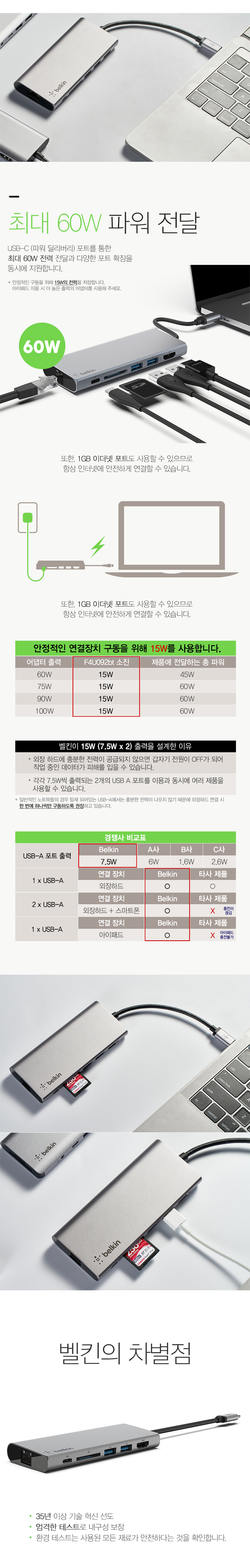 벨킨 USB 3.1 C타입 멀티 허브 노트북 도킹스테이션 F4U092bt