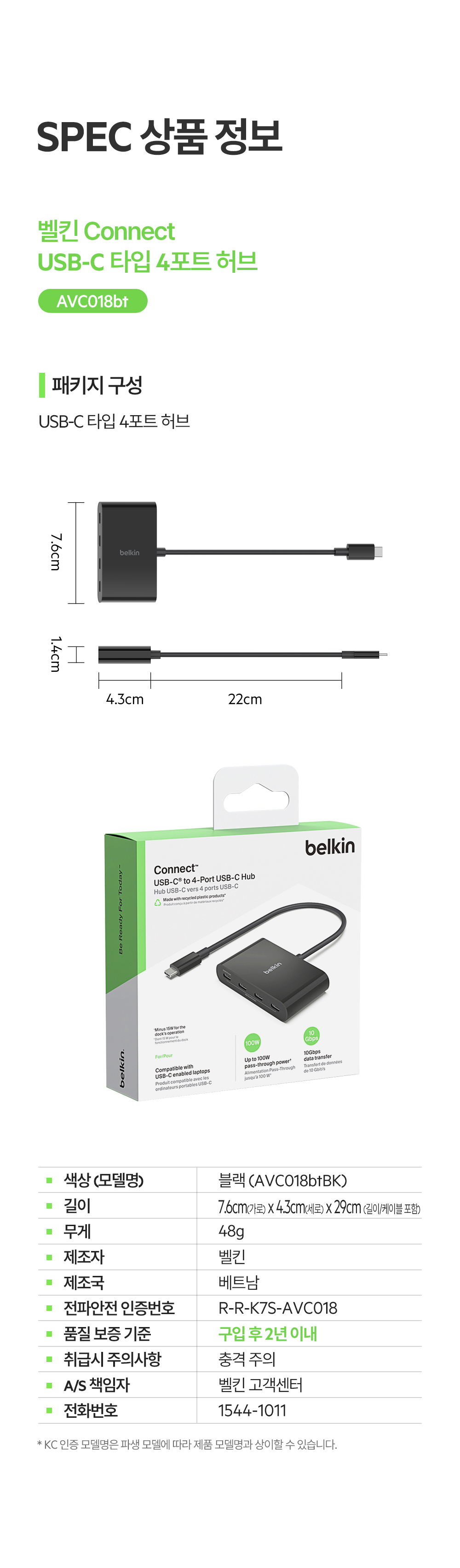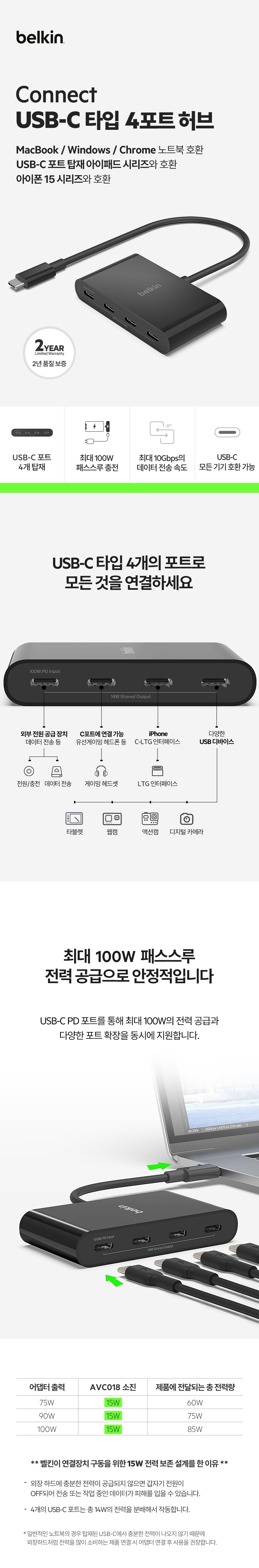 벨킨 4in1 USB-C타입 멀티 허브 AVC018bt