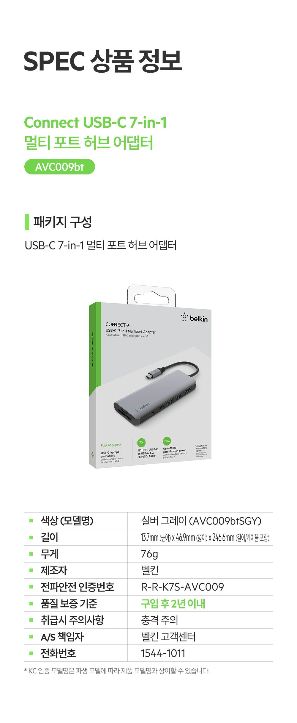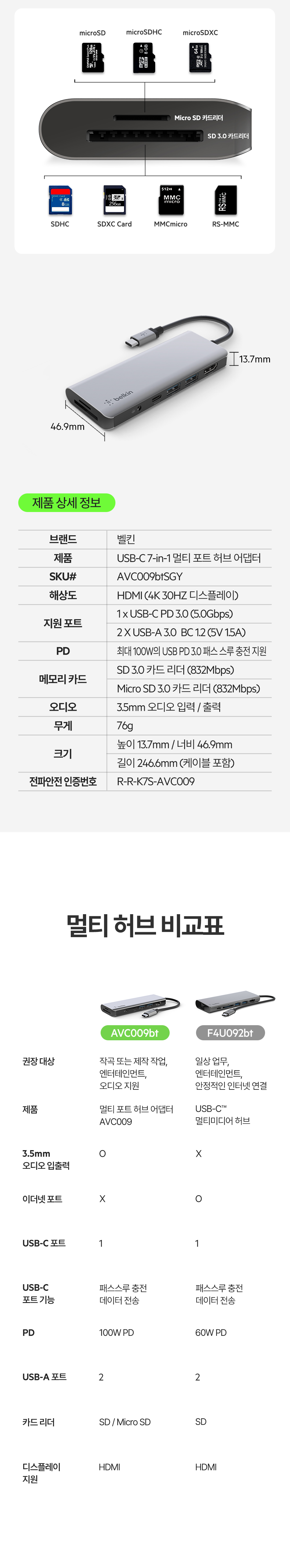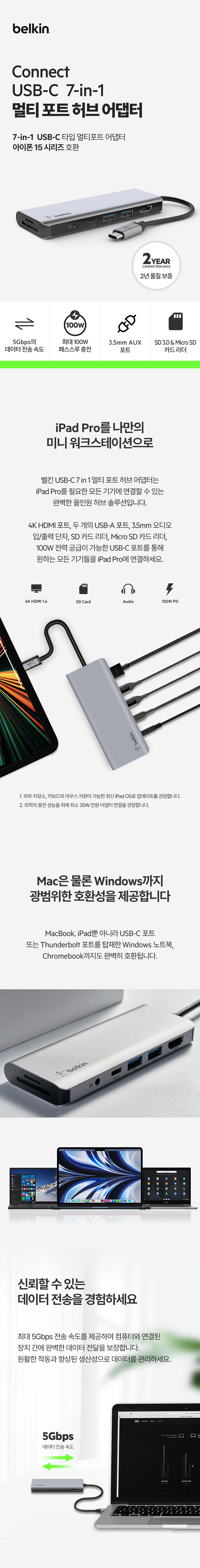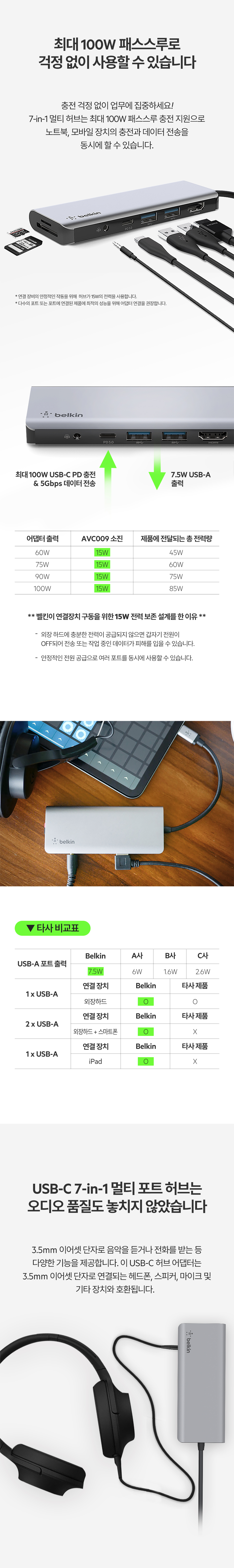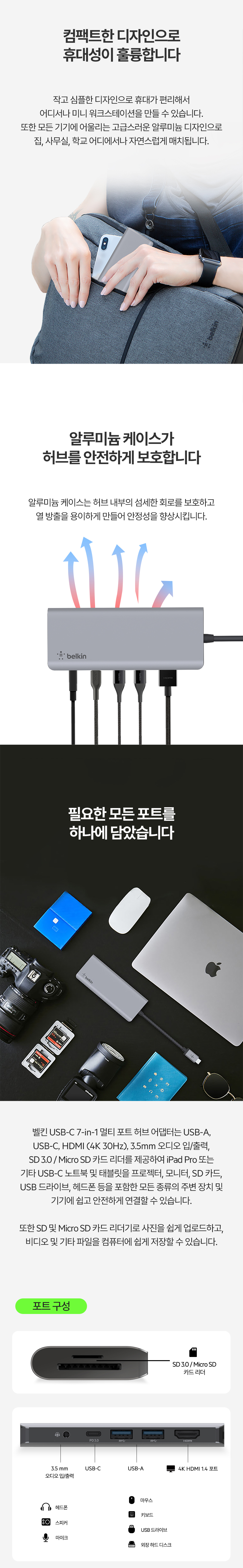 벨킨 7in1 USB-C타입 멀티 허브 AVC009bt