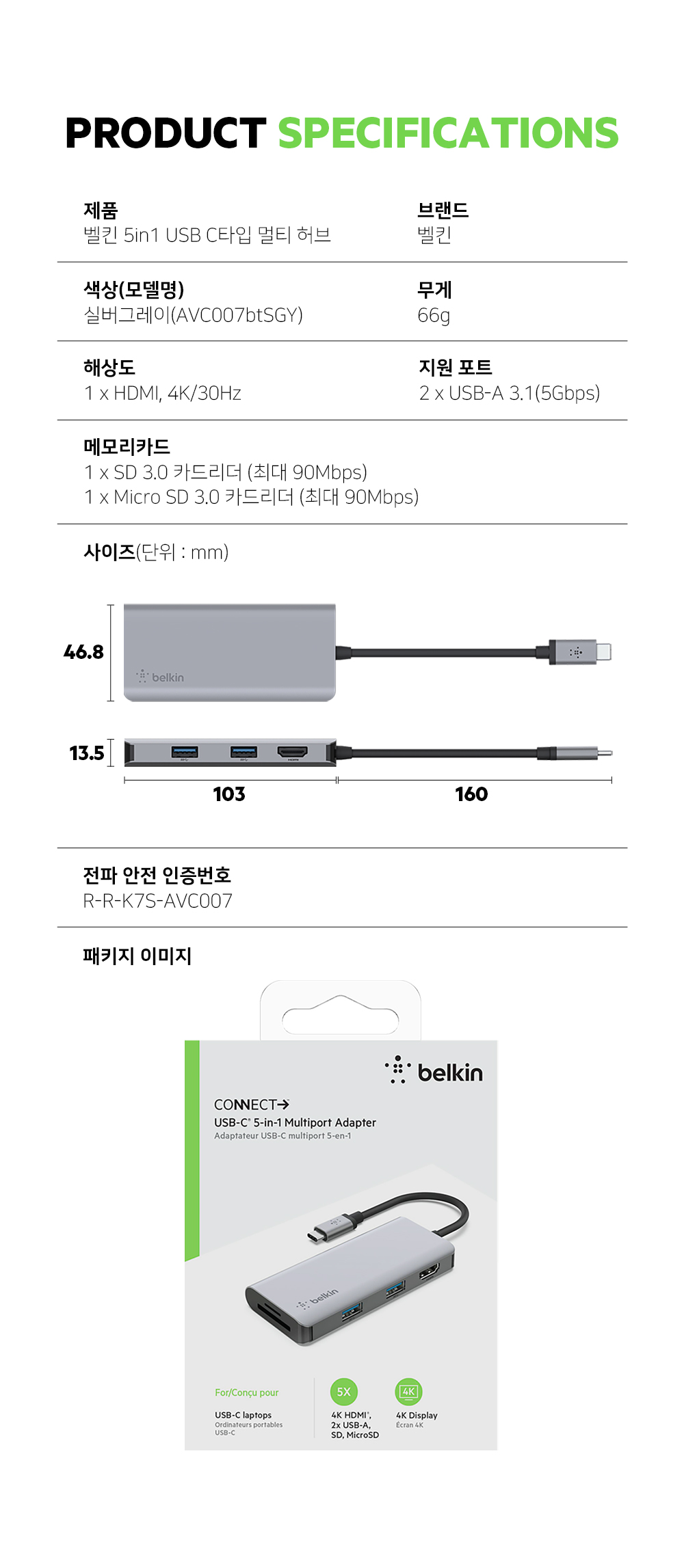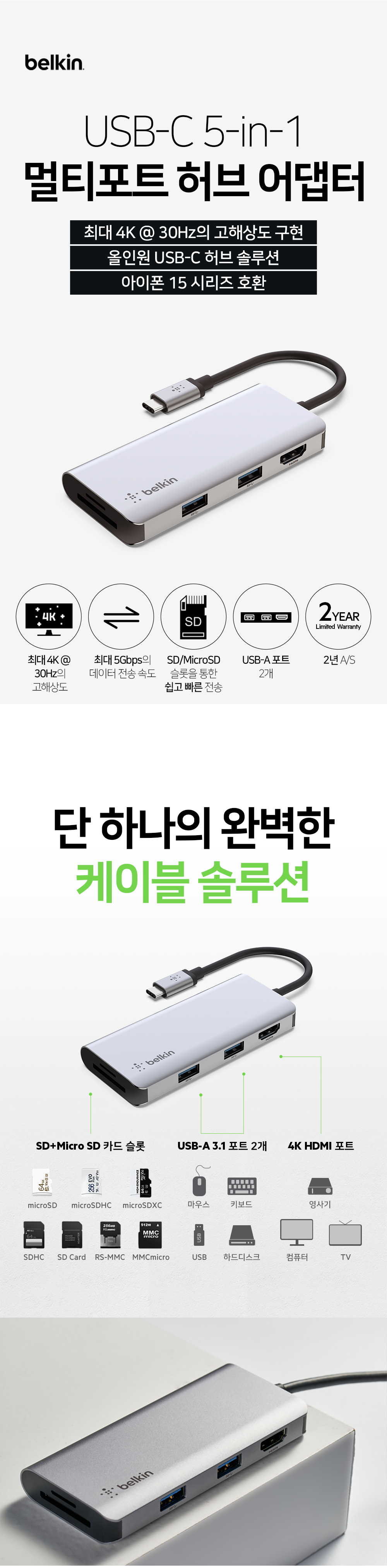 벨킨 5in1 USB C타입 멀티 허브 AVC007bt