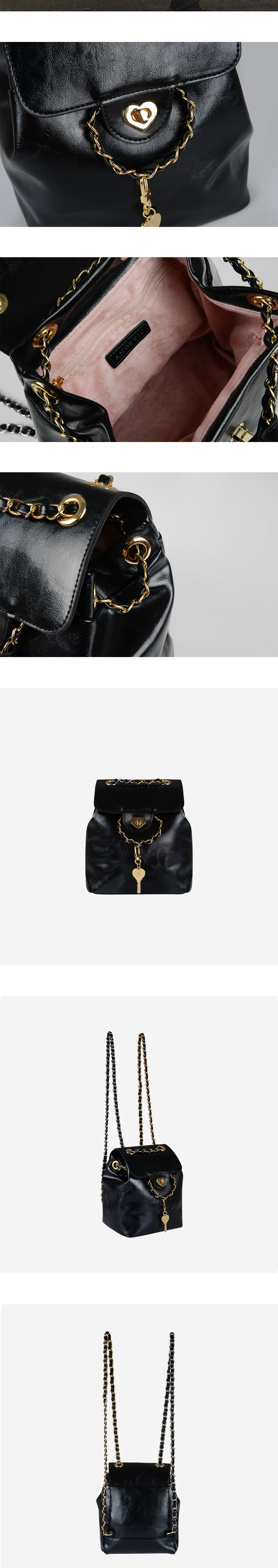 제품의 체인은 국내 공장에서 수작업으로 만들어지고 있습니다. 가방의 용량보다 과도하게 초과하여 수납할 경우, 힘을 가하여 잡아당길 경우에는 체인이 끊어질 수 있으니 주의하십시오.