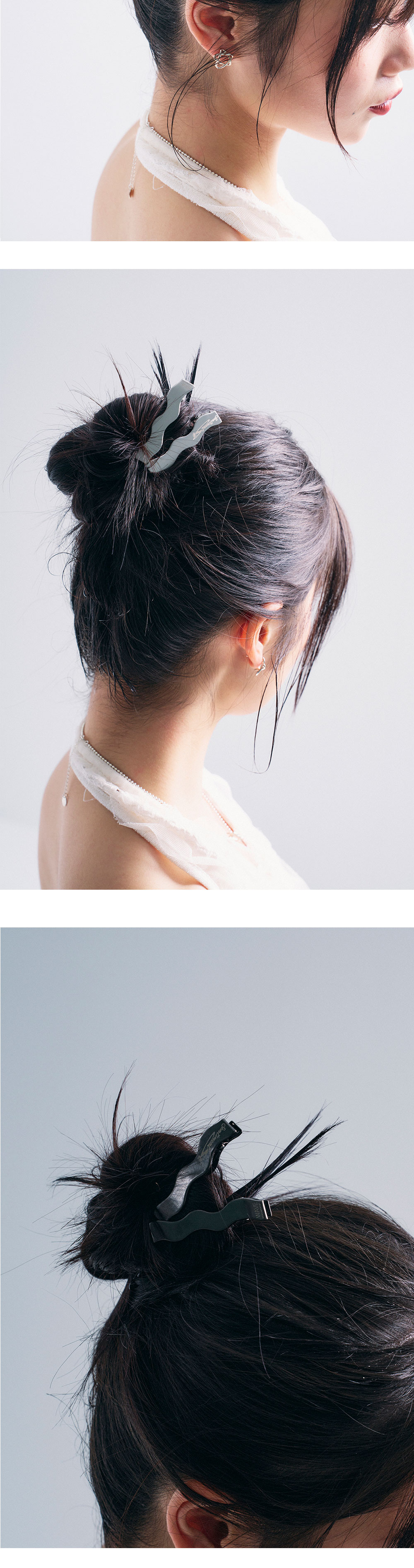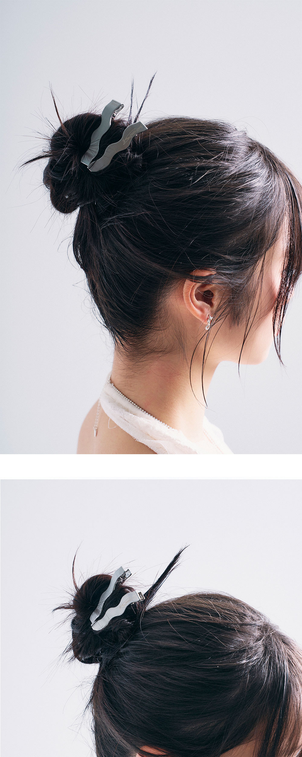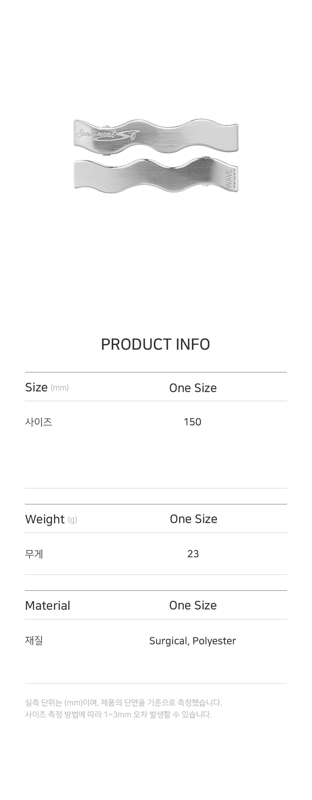 • 크기: 가로(W) : 6CM / 세로(H) 1CM • 무게(WEIGHT): 4.5G • SENTIMENTS 2023 F/W WAVE HAIR PIN • 2SET • SENTIMENTS 23 S/S 자체 디자인 • 사틴 도금으로 고운 표면 처리 • 제조국: 대한민국 • 부드러운 천으로 닦아 관리 소재: 철(STILL) 100% OR두께도금(ORIGINAL RHODIUM PLATED) 사틴도금(SATIN PLATED)