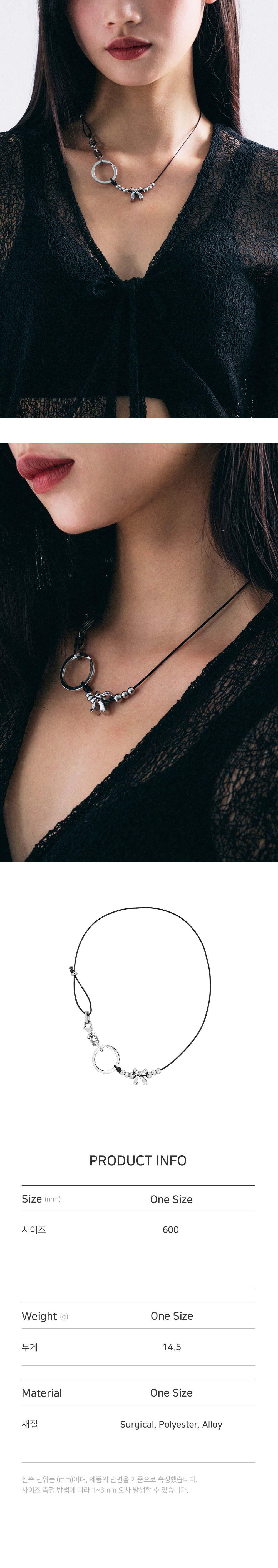 • 길이: 최대 60CM 펜던트 가로(W)1.5CM X 세로(H)1.5CM • 무게(WEIGHT): 14.5G • SENTIMENTS 2023 F/W 자체 제작 리본 펜던트 • 사이즈 조절 가능 • 이동조절 장식 • 제조국: 대한민국 • 부드러운 천으로 닦아 관리 • 소재: 써지컬(SURGICAL) 85% 폴리에스터(POLYESTER) 10% 합금(ALLOY) 5%
