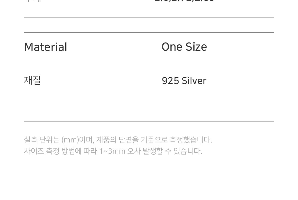 • 크기: 가로(W) 21.8CM X 세로(H) 21.8CM • 두께:2.5MM • 무게(WEIGHT): 2.6G / 2.72G / 2.83G • SENTIMENTS 23 F/W 뉴로고 • 11호 13호 15호 • 무도금 • 은세척 폴리싱천 포함 • 제조국: 대한민국 • 부드러운 천으로 닦아 관리 • 소재: 925(SILVER) 100%