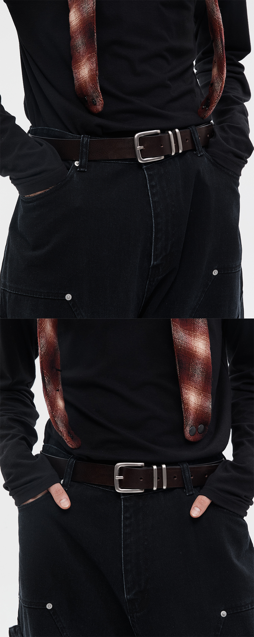 심플하고 고급스러운 버클로 포인트를 준 벨트입니다. 생지에 태닝 염색 후가공을 통해 은은한 빈티지함을 연출하였습니다. 해당 가공 특성상 일부 스크래치 현상이 있을 수 있으며 마찰이 됨에 따라 자연스레 스크래치가 생겨 착용하면서 가죽이 좀 더 빈티지한 무드로 변합니다. -model- mid long hair185/65 2사이즈 착용 mid hair183/63 2사이즈 착용